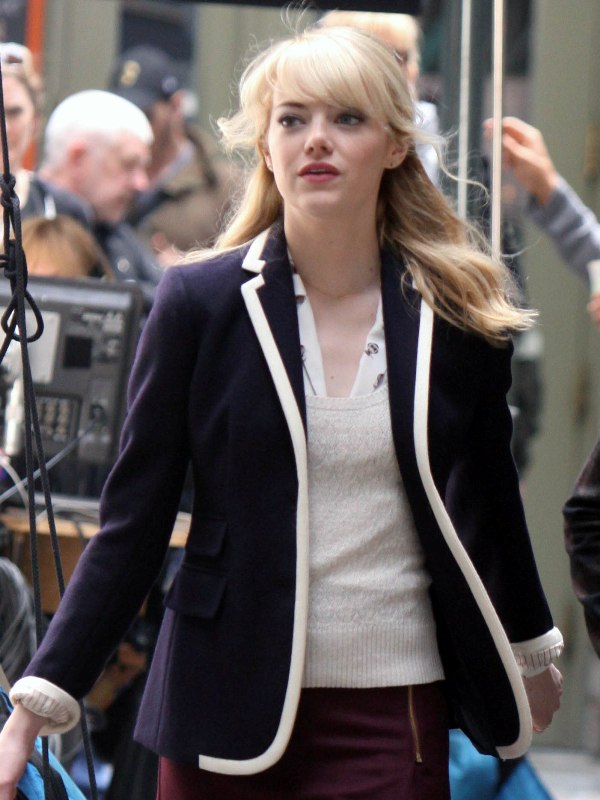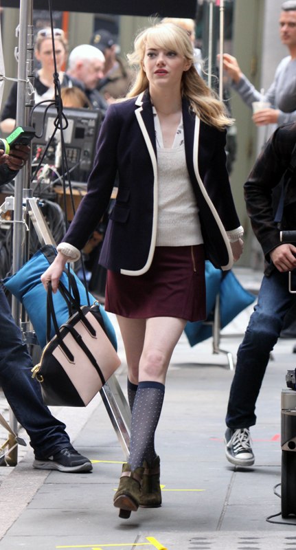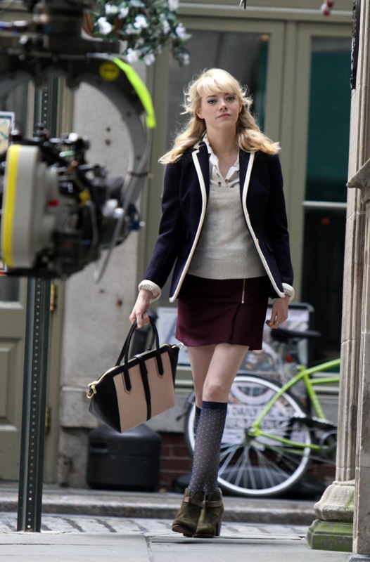 Love the white trim. Not sure about the socks, but they’re for character as Gwen Stacy as she’s here on set of the sequel.