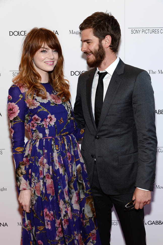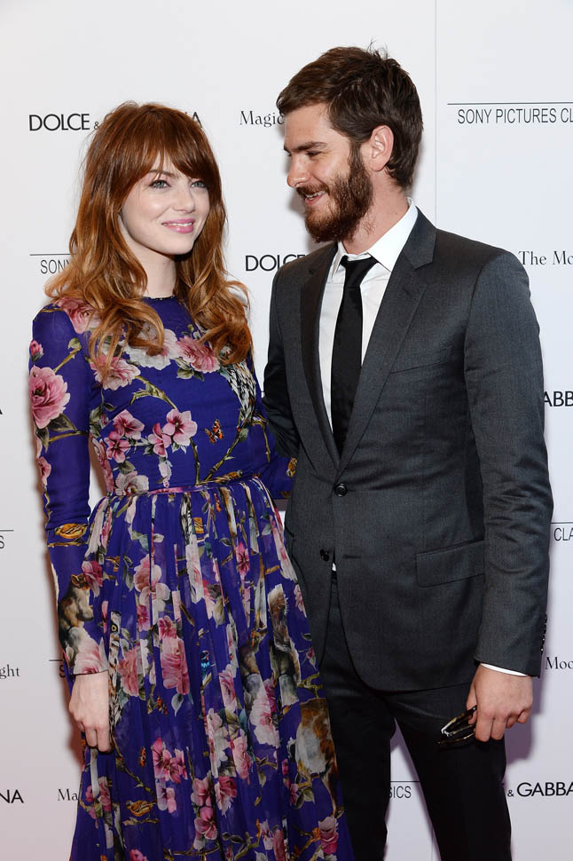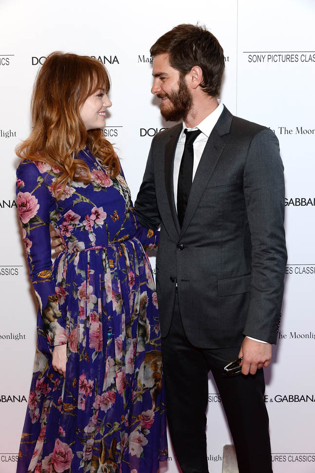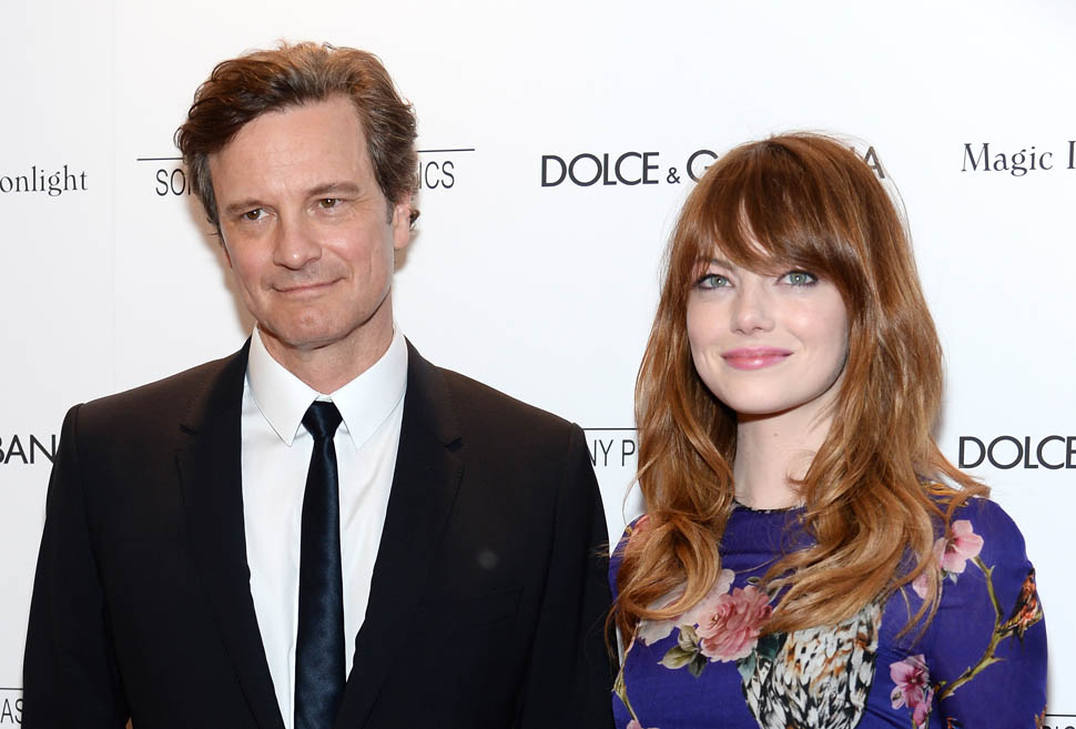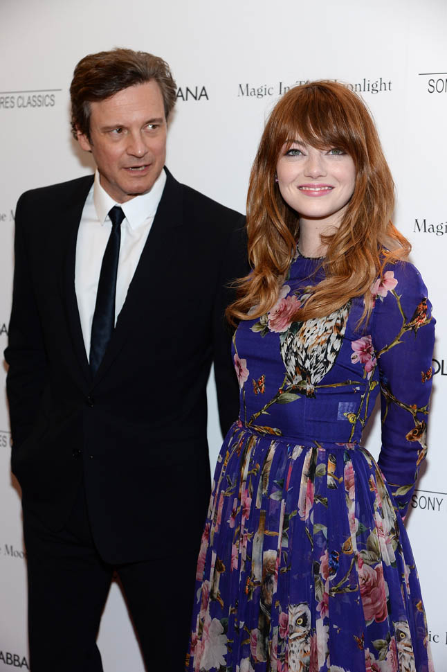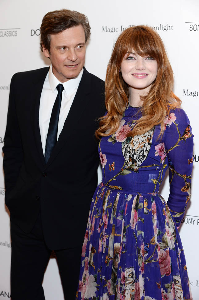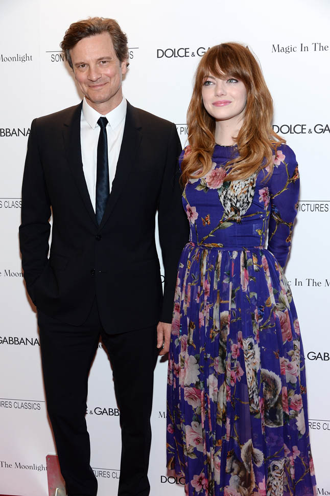 New York premiere of Magic In The Moonlight. Emma Stone showed up with her boyfriend Andrew Garfield. Of course her co-star Colin Firth was there too. Not a bad night, right?