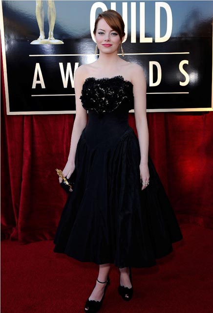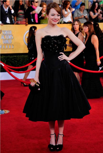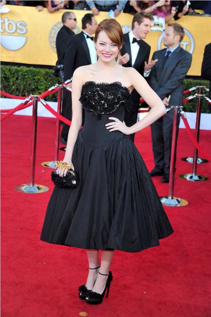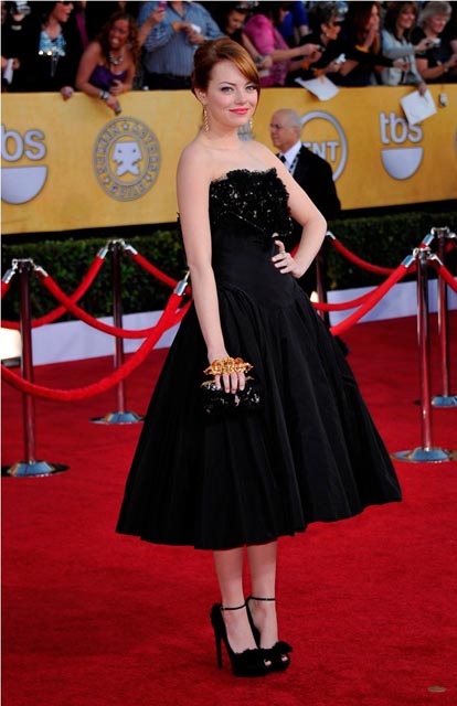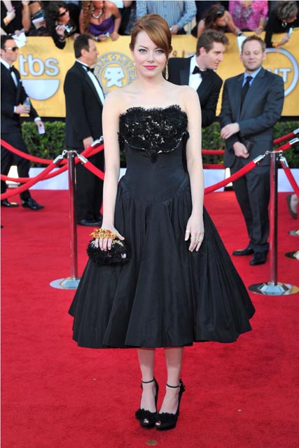 It’s not my favourite; this silhouette never is. Perhaps on someone else I’d be more annoyed than I am. But because it’s Emma Stone, and she has demonstrated a willingness to try new shapes and lines, to not be boxed into one particular look, I’ve a lot more patience for it than, say, if this was worn by Reese Witherspoon. You see the difference now?