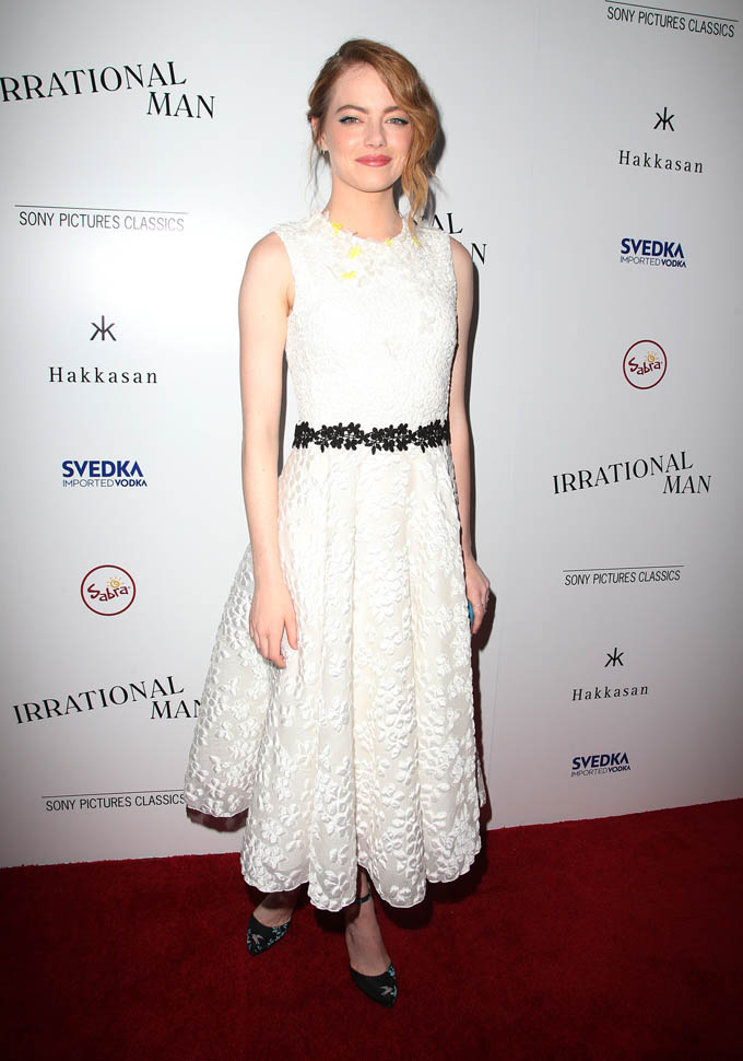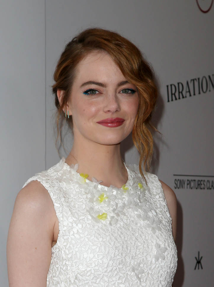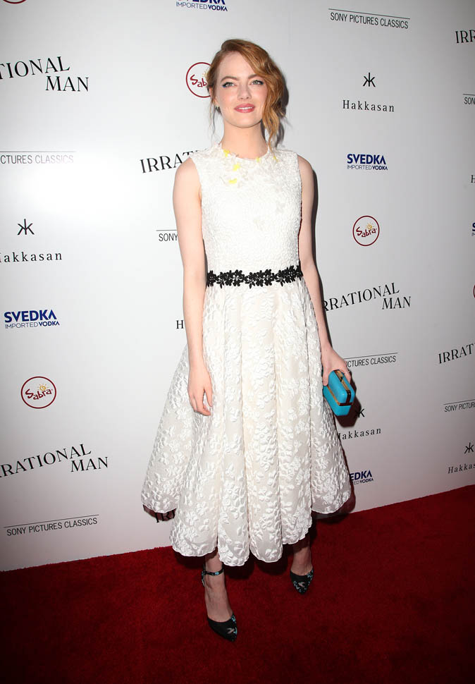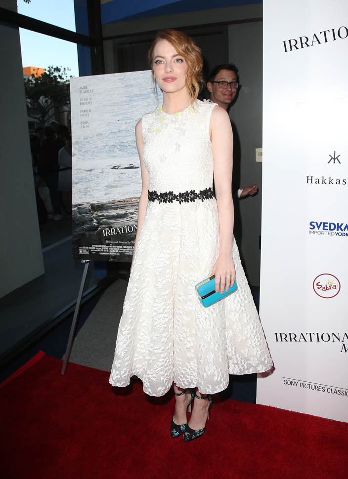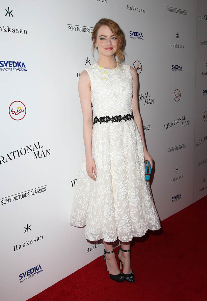 Emma Stone at the Irrational Man premiere in Hollywood last night. It opens in limited release next week. Reviews aren’t great. I mean they’re not terrible, but for the second summer in a row she’s in a Woody Allen movie and no one’s going to see it. What was that last one called? Midnight In The Moonlight? I don’t even care enough to google it.