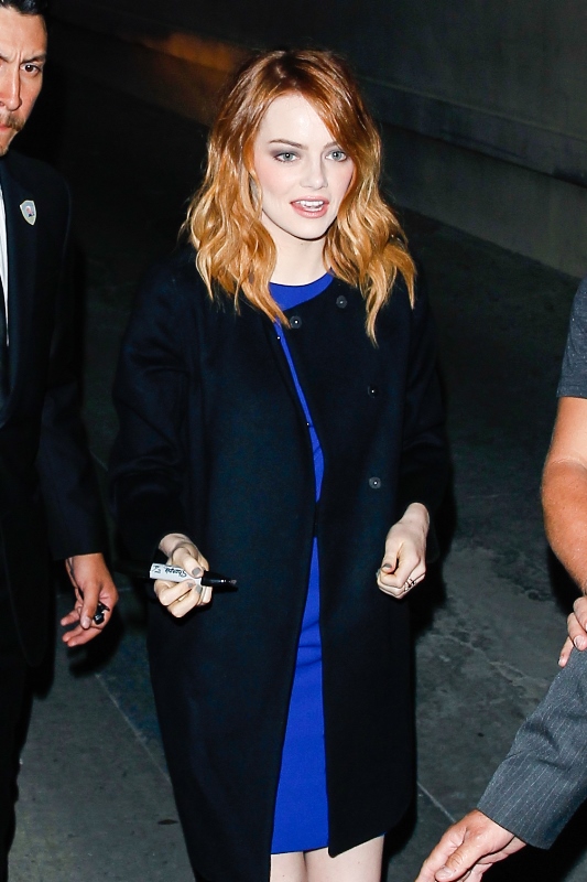The Amazing Spider-Man 2 press tour has arrived in North America. Emma Stone was on Kimmel last night. Let’s start there. She has a cold. But you couldn’t really tell because, as always, she was sweet and charming and willing to embarrass herself. By demonstrating that her hidden talent is forging all the Spice Girls’ signatures.