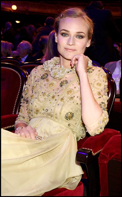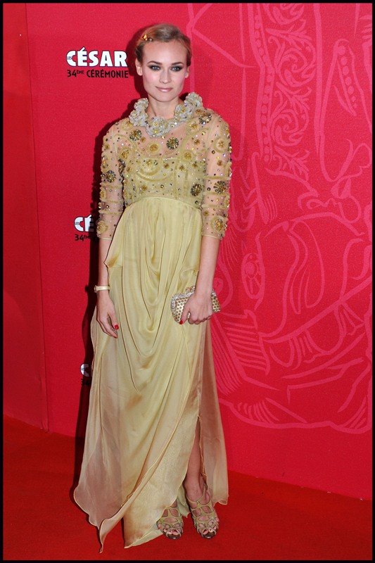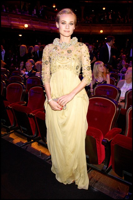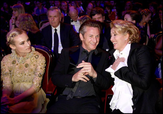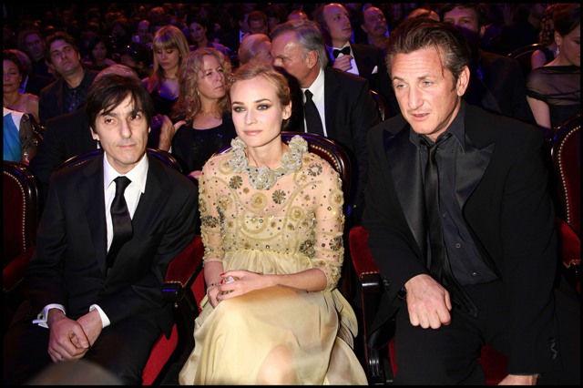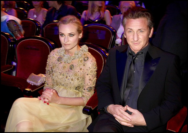 Also attached - photos of Diane Kruger in a gorgeous yellow gown, sucky faced at having the misfortune of being seated next to sour Sean with whom it must be impossible to make small talk.