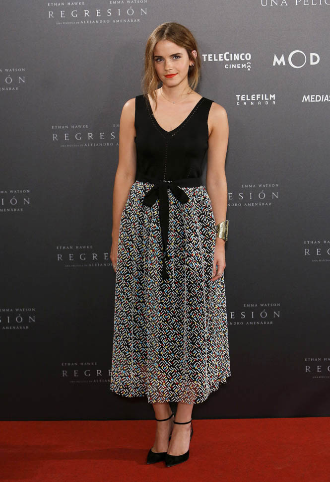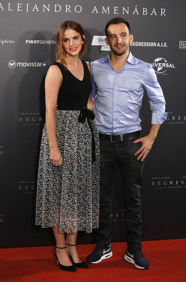 Emma Watson is in Madrid today promoting Regression with director Alejandro Amenabar. Emma stars with Ethan Hawke and David Thewlis, aka Remus Lupin, and the film may or may not be about a cult. Sarah wrote about the trailer a few weeks ago – click here for a refresher. Regression was originally supposed to be released next week in North America but they’ve pushed that back to December. It’ll still be coming out in Europe in October. They shot the movie just outside of Toronto last year. Which is my segue to talking about Emma being back in Toronto in a couple of weeks for TIFF to screen Colonia. Colonia ended up being on your long list of TIFF votes after Sarah’s call-out earlier this month for you to nominate what she should see when she’s in Toronto covering the festival for the first time. We just worked on her screening blocks last night and right now, Colonia is on her preliminary schedule.