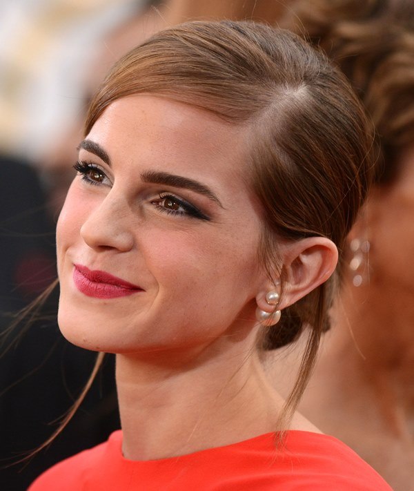 Emma Watson wore almost garish makeup. It was a little too bright and a little too much.