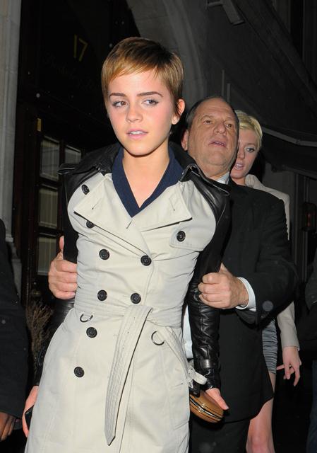 I posted this article yesterday, late in the day, about Emma Watson, with a note on Harvey Weinstein at the end, asking whether or not I was alone in thinking it was gross that he went with her and some other young girls to a nightclub in his Rolls Royce. I’ve since heard from many of you – sounds like we are collectively skeeved? Here, let’s look at the photos again, for those of you who didn’t see.