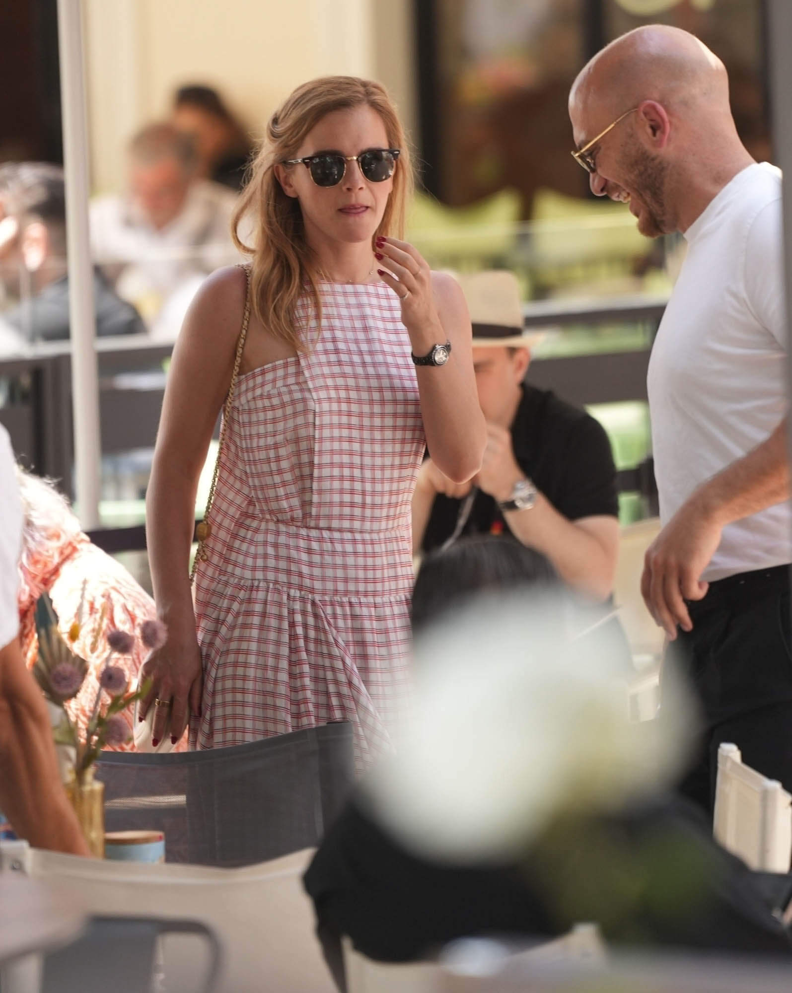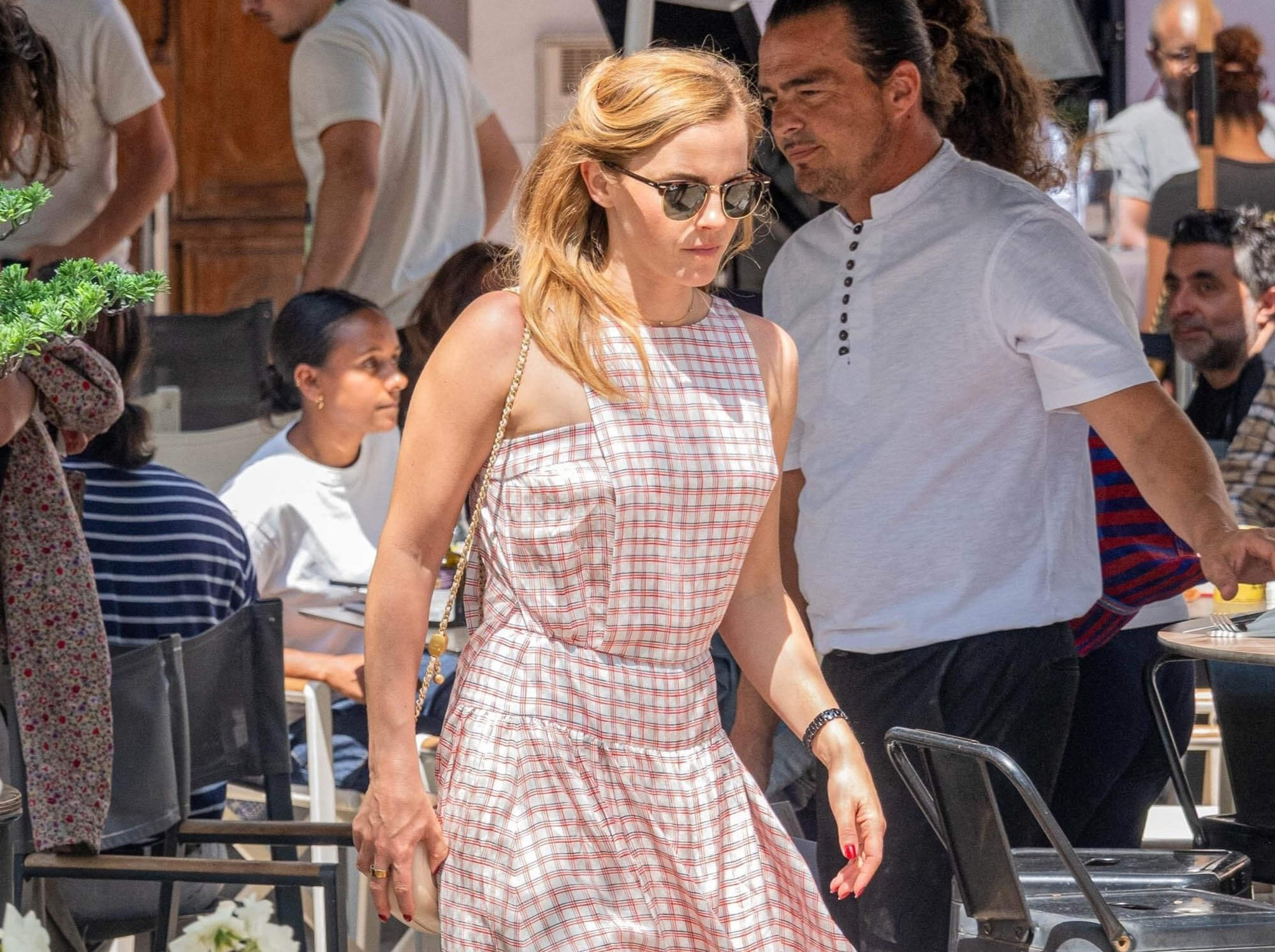 Surprisingly, though, Emma Watson has turned up in Cannes. It’s been a full Chinese zodiac cycle – 12 years – since she was last there, for The Bling Ring. Today she was seen having lunch and walking along the Croisette in a pink gingham drop waist dress and I like the unexpected shoe choice: suede Chanel boots.
