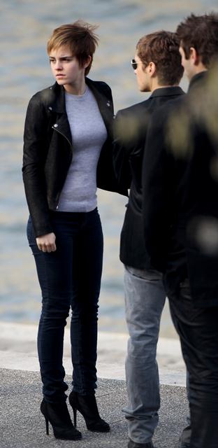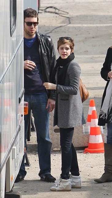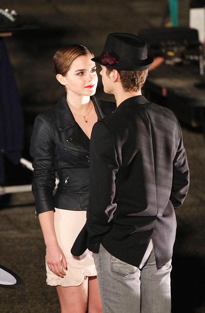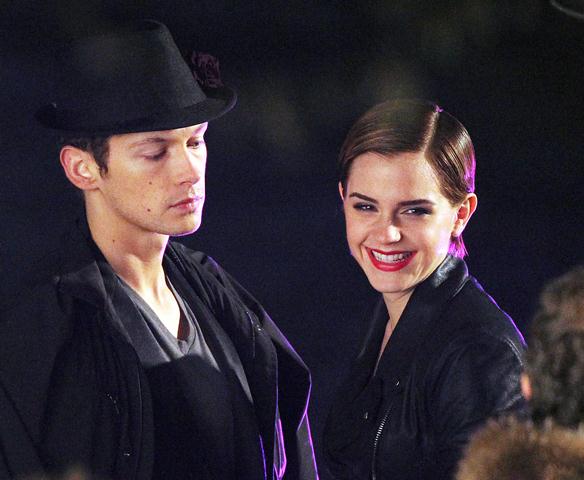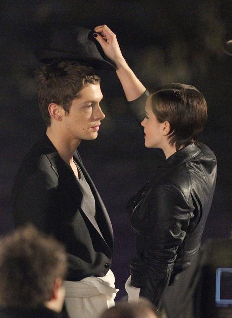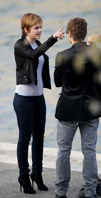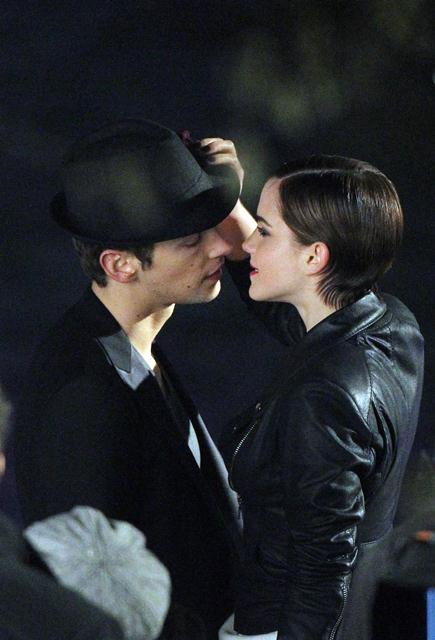 So here’s Emma Watson continuing to shoot her first ad for Lancome, directed by Mario Testino, with French actor Cyril Descours as her love interest. And they kiss. And it really does look great, even in these pap shots without the benefit of Mario’s flattering lens and lighting.