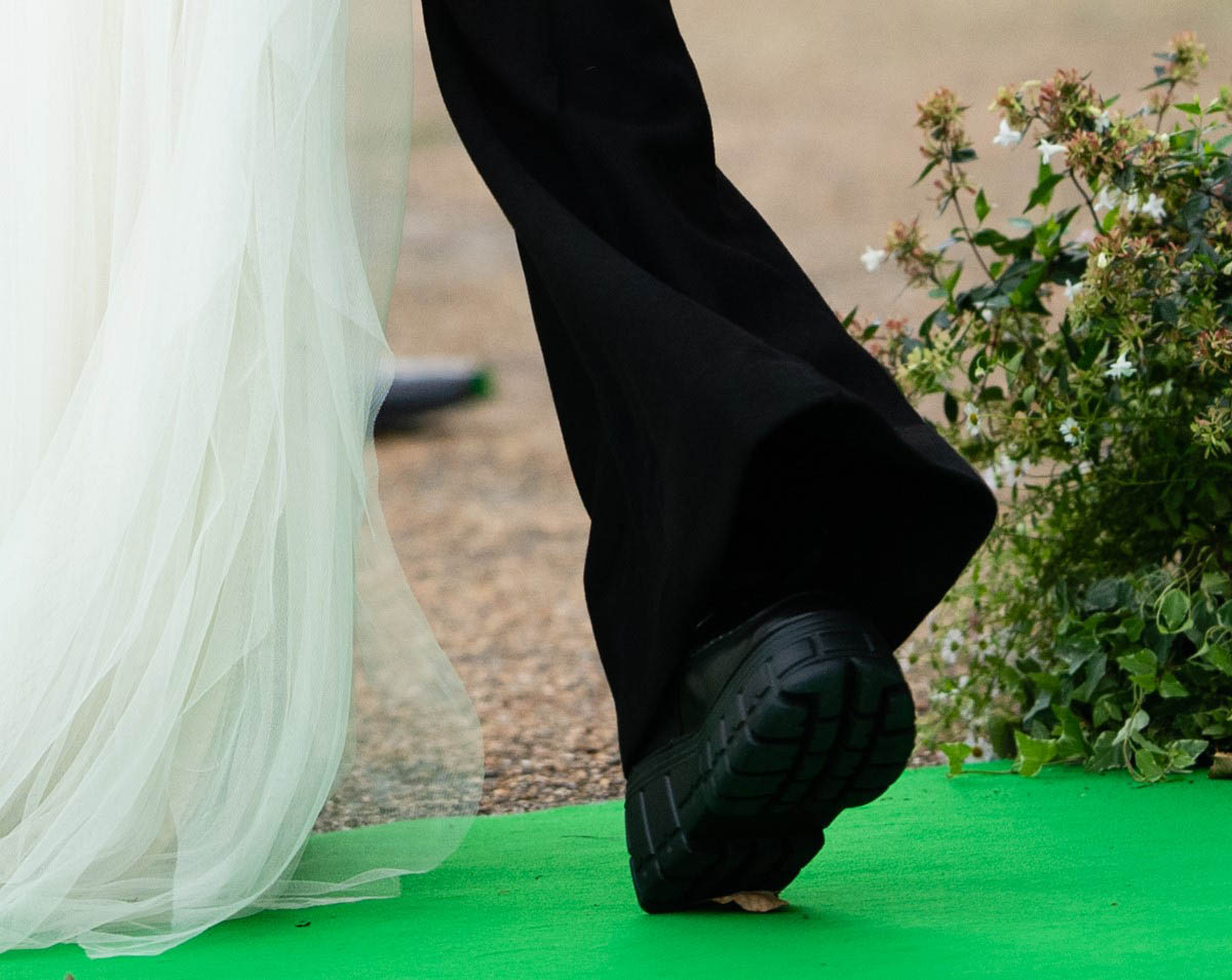 Underneath the pants she’s wearing lug sole boots. I like the footwear choice, but I’m not super into the pants because of the wide-leg. But the pants and the shoes are not the story. The story here is that the dress-top is sustainable because it’s Oxfam, made from ten upcycled wedding dresses. So it’s a look that meets the spirit of the event and is consistent with some of her previous fashion choices. You’ll recall, back at the Met Gala in 2016 she wore a Calvin Klein look that was made out of recycled materials and organic cotton.