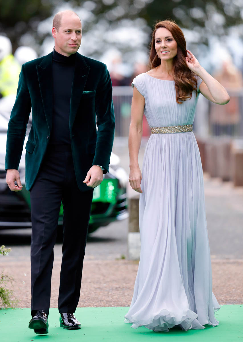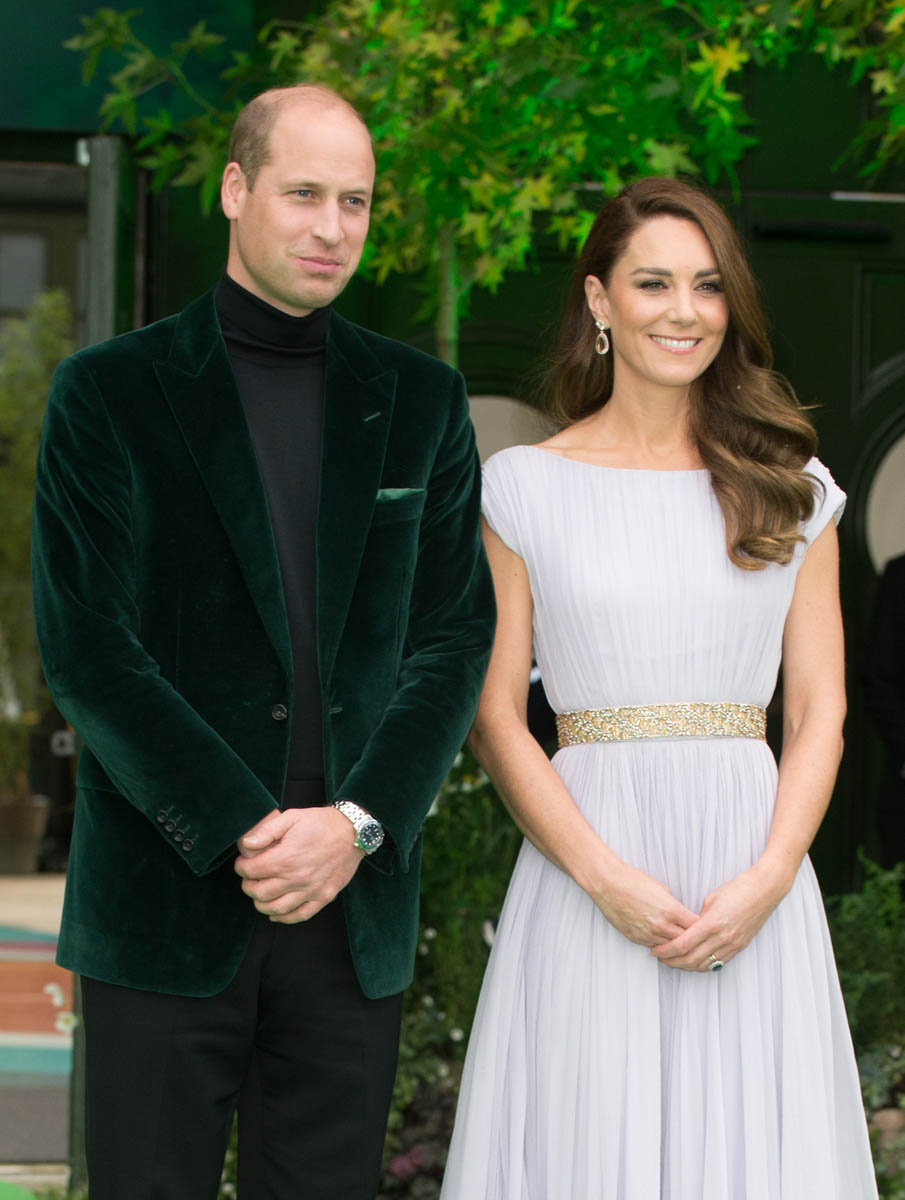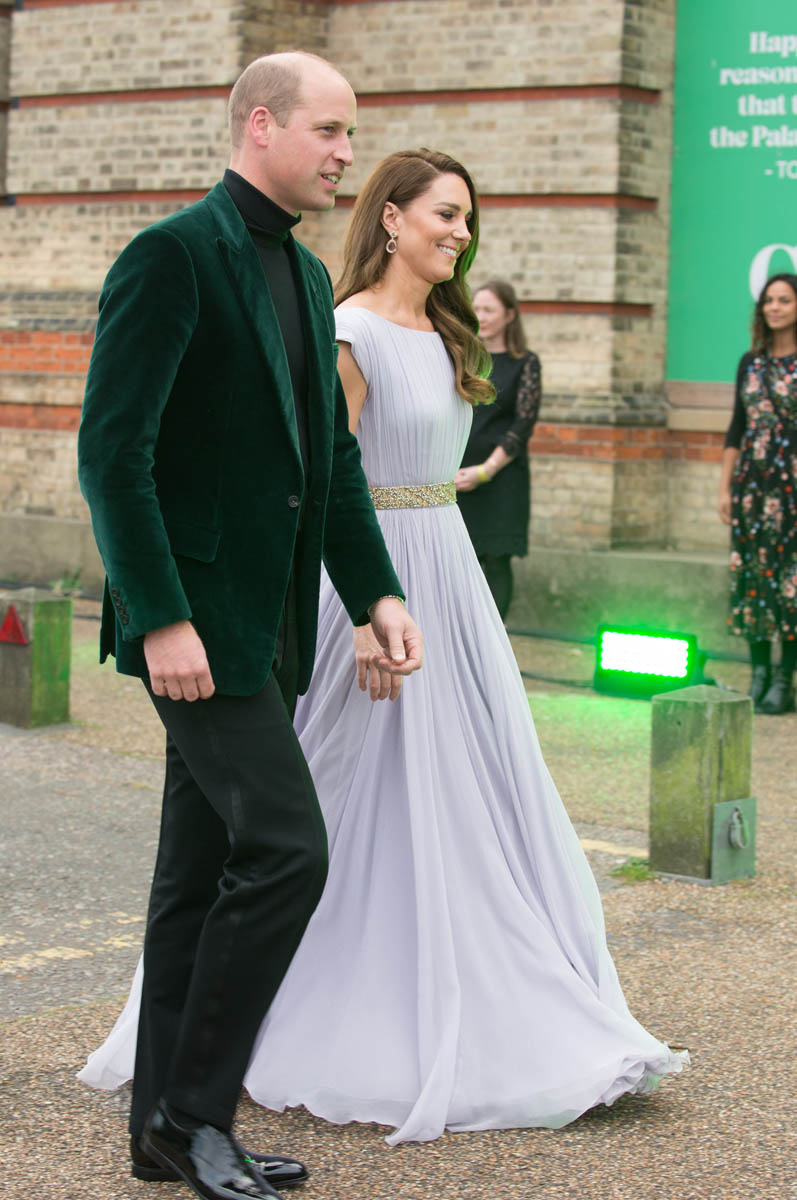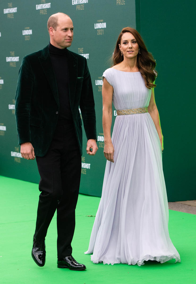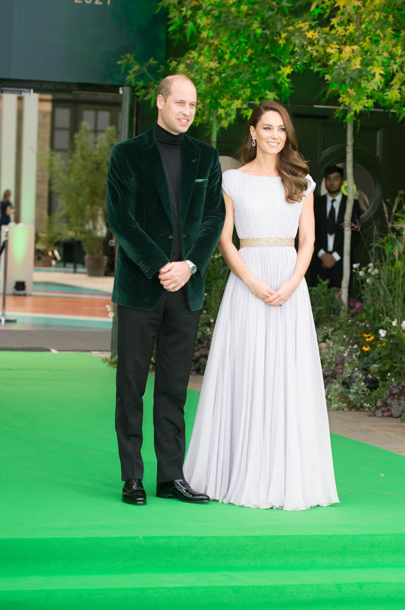Prince William and Kate were the guests of honour at the Earthshot Prize ceremony where guests were asked to not buy something new to wear, which Kate does often anyway, and she pulled out a McQueen that was first seen on her in 2011, and William wore a green velvet jacket (Reiss, 2019) over a black turtleneck. It’s a good look on him – very Bond, as some people are pointing out.