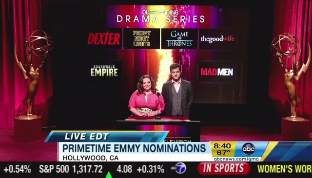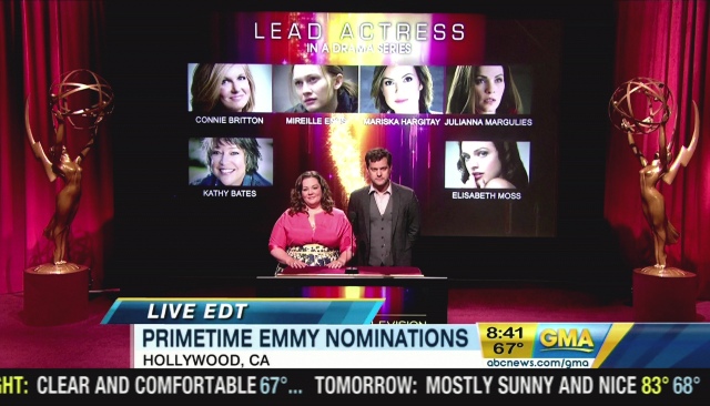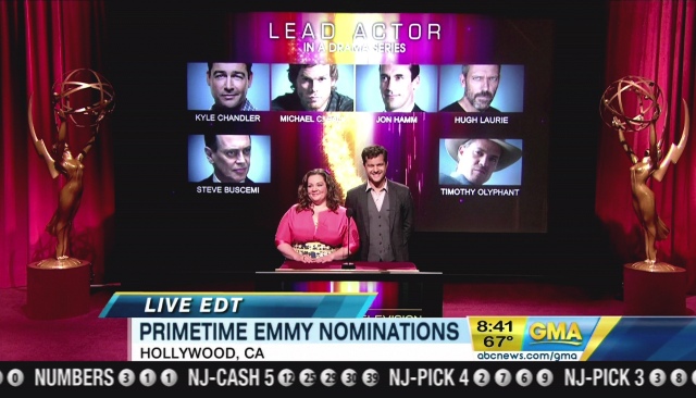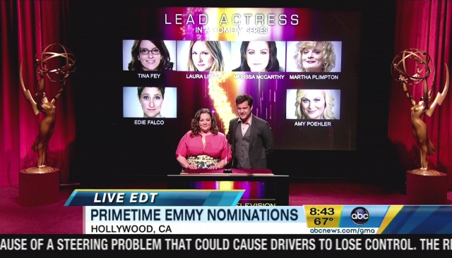 Attached - Melissa McCarthy and Joshua Jackson announcing the Emmy nominations earlier today.