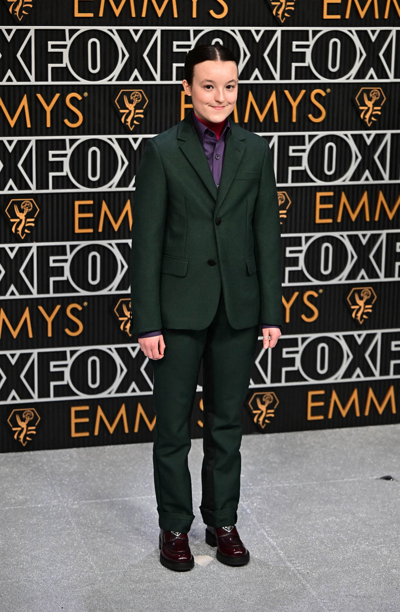 Bella Ramsey, too, opted for a suit, a green number from Prada with like, two shirts. I think that’s a red turtleneck under a purple button-down? Too many shirts! I’m all for an undershirt, but a turtleneck? It’s too much! It makes my neck itch just thinking about it.