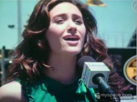 Emmy Rossum bringing the Full Rossum to race car driving this past weekend. She sang the national anthem and to be fair, Emmy has a decent voice. Even a good voice. And at the very least it wasn’t Jessica Simpson-styles vocal gymnastics. So many artists these days enjoy butchering a classic piece of music, you know what I mean?