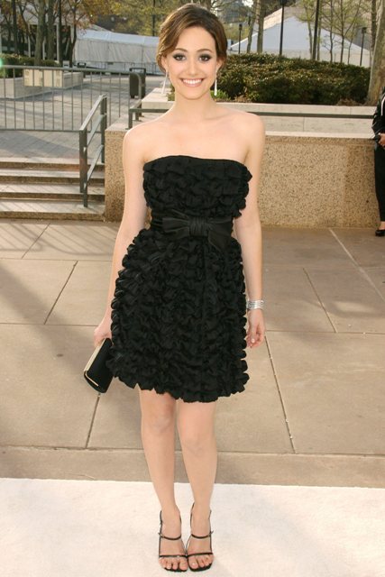 Like the dress. The dress is beautiful. On Emmy Rossum though, with the shoulder shrug pose and the obsequious smile, the bashful batting of her lashes, and the demure smile, the dress becomes just too… precious. And obvious. Her effort is obvious.