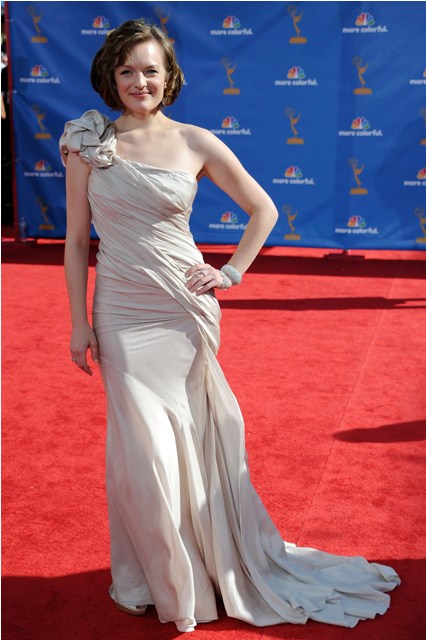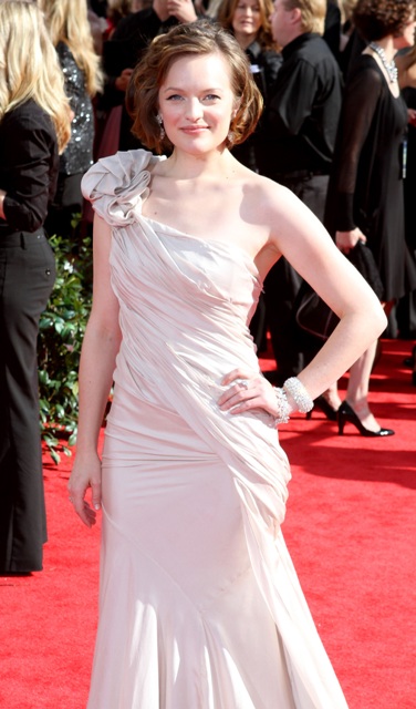 Elizabeth Moss was also demonstrating some thinnification of her own divorce styles. Am attaching photos from the Emmys and also from the night before – a very svelte Moss in a bandage dress at the Entertainment Weekly party and if you watch Mad Men, you know that’s not what she looks like on the show.