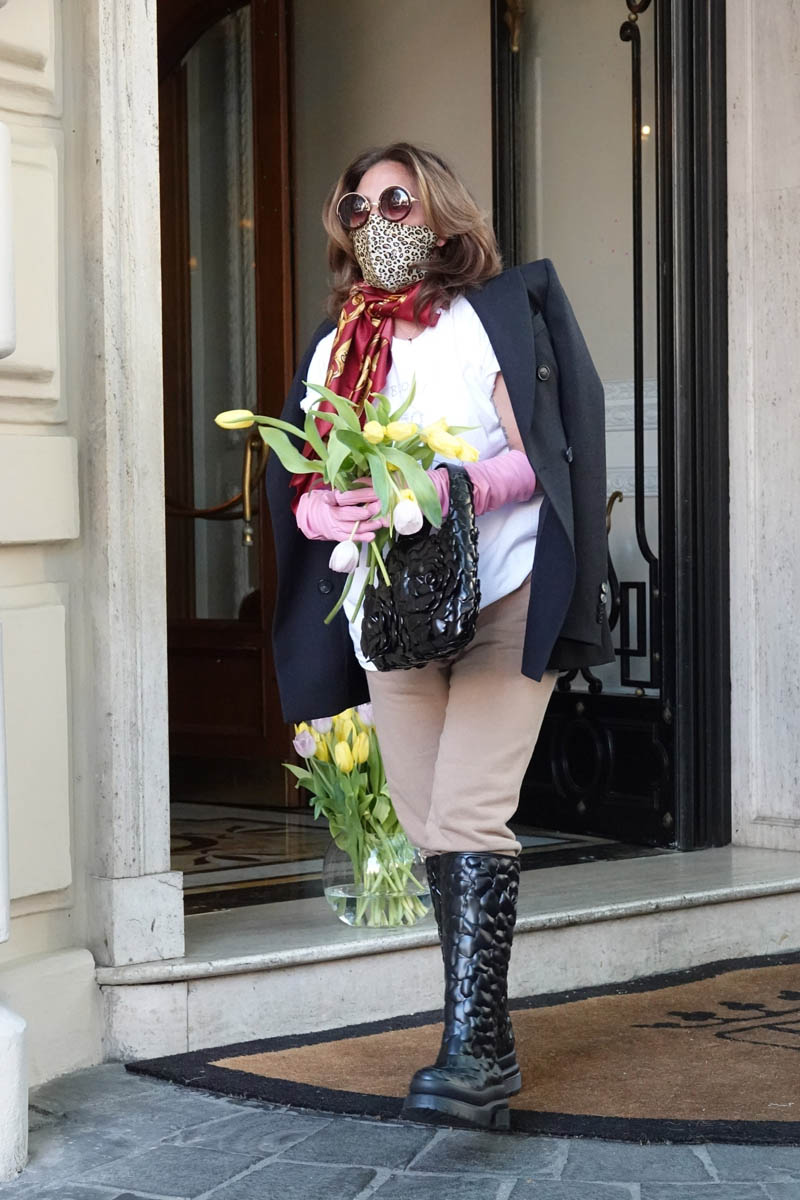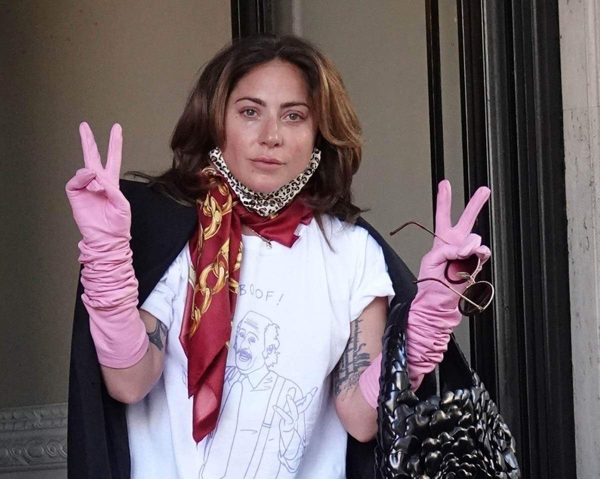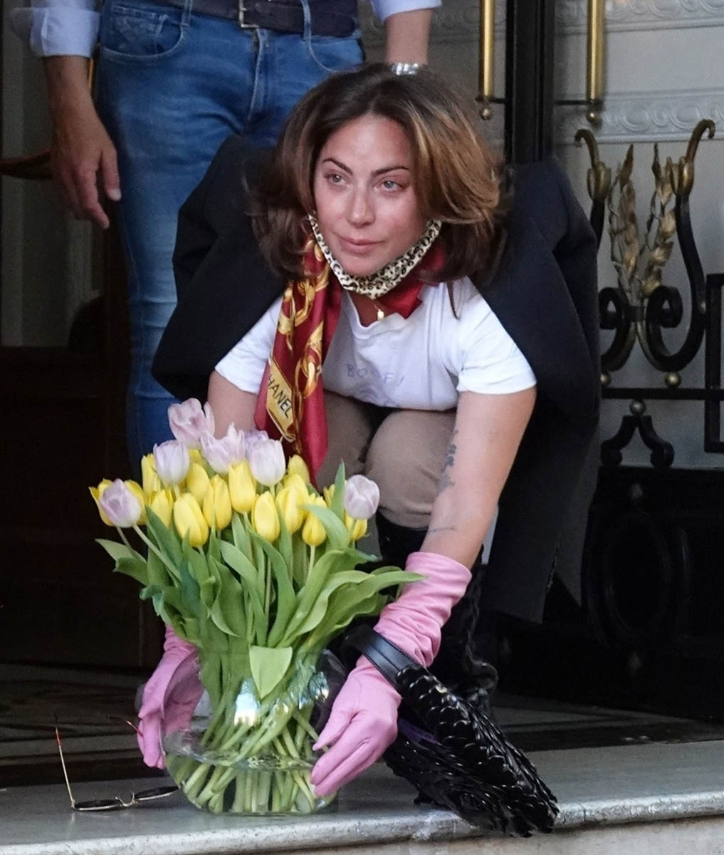 Lady Gaga was seen this weekend at a party in Rome – likely the wrap party for House of Gucci. Because yesterday she was photographed leaving her hotel, seemingly emotional according to the paps, and throwing flowers to her fans who’d been waiting outside. It’s exactly the kind of theatre her Little Monsters expect from her. It’s exactly the kind of theatre we expect from her. With Celine Dion you get a fashion show. With Gaga you get tears and a tulip shower.