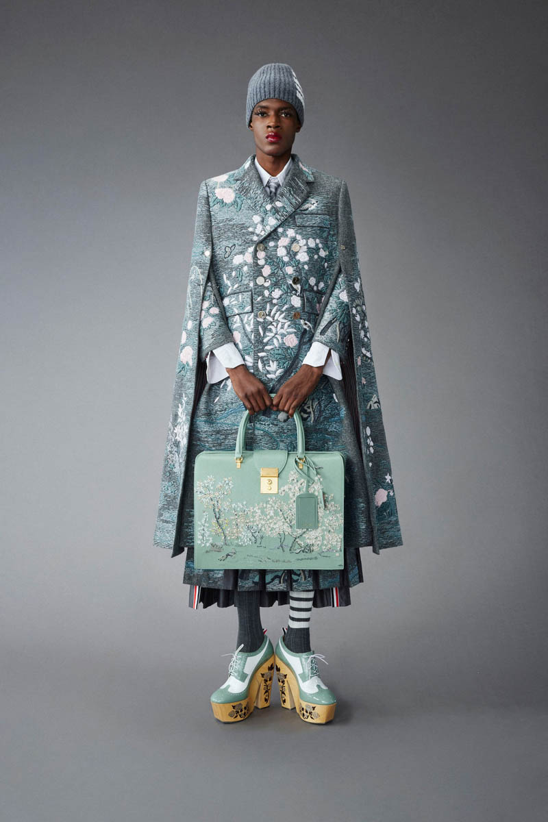 I wore a couple of Thom Browne outfits late last year on The Social (they were on styling loan, we had to return them). It was my first time with the label, and I love the fit. The quality of the material, the construction, the detailing – all of it was outstanding. And this entire new collection is outstanding. Everything is amazing here: the fabrics, the colours, the patterns, the cuts, the lengths, the shoes, the stripes, and all of it is my jam. School uniform! (Go Fug Yourself)