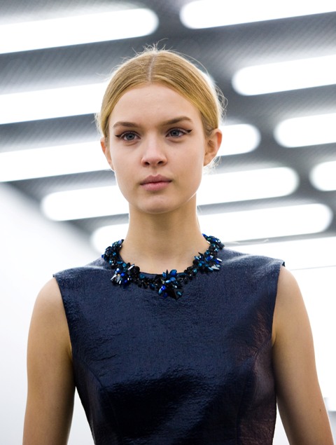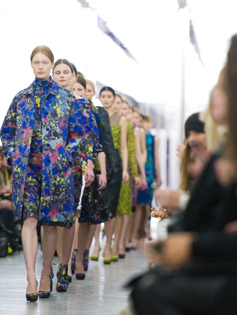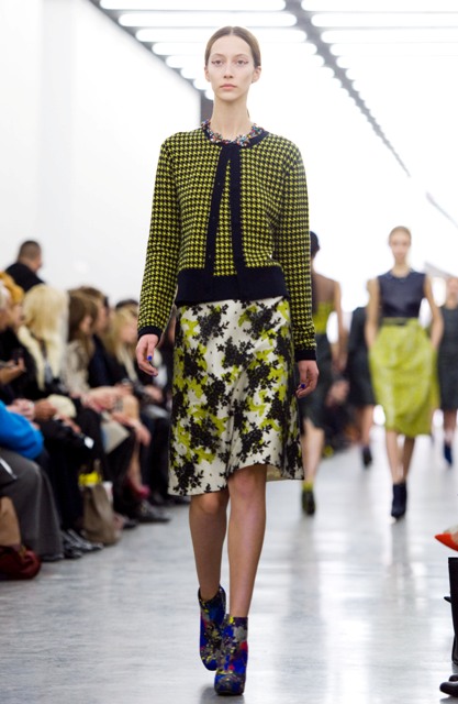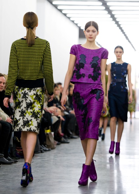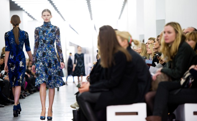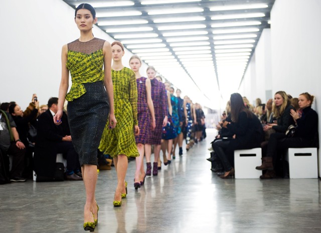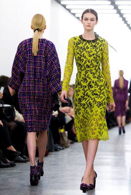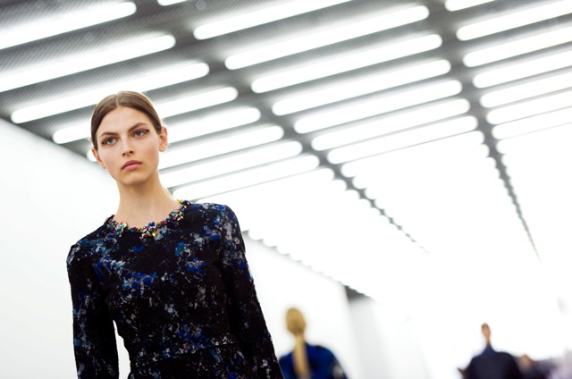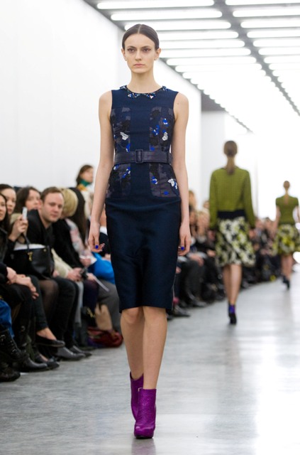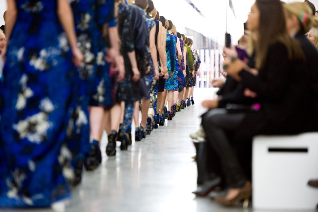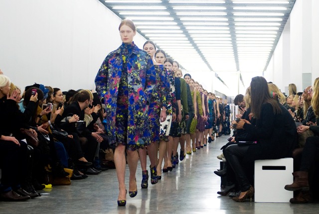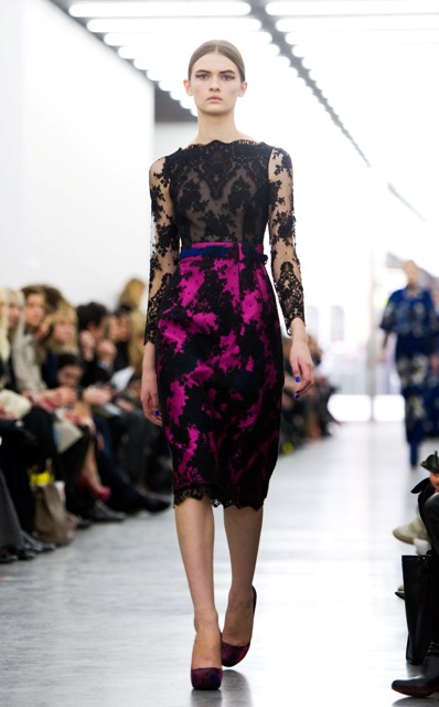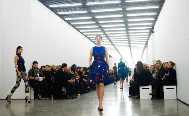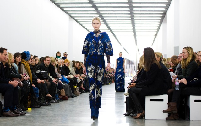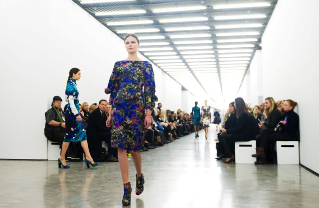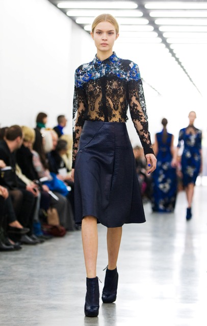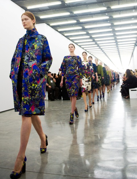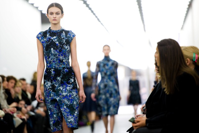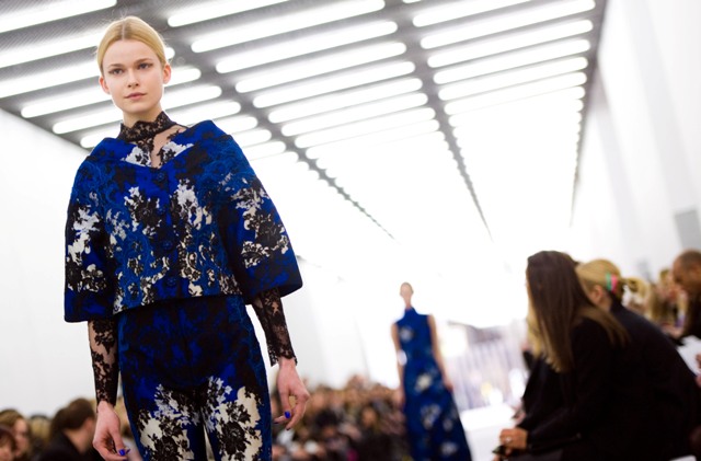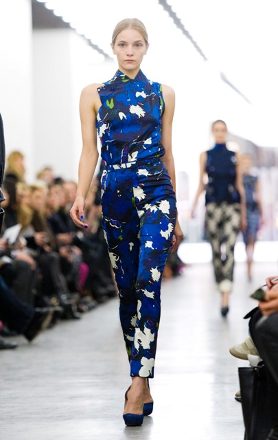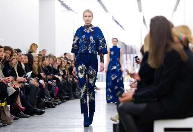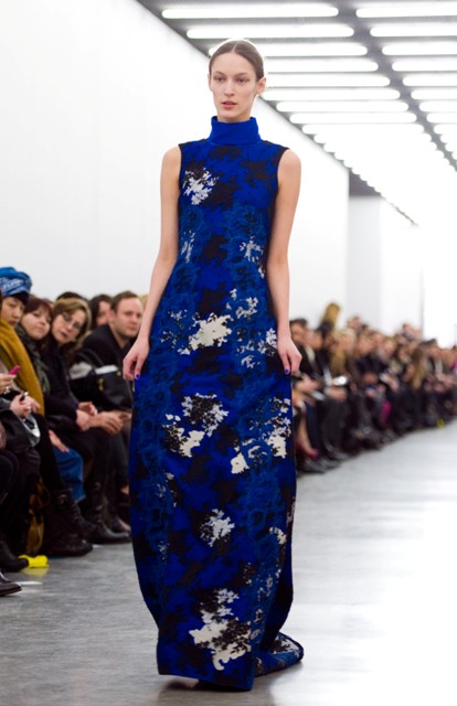 There has been a lot of floral, as you know, but to me, BY FAR, these are the most beautiful prints we’ve seen coming down the runway including those from Paris and New York. Oh My God look how exquisite. The full length high collar blue, black, and white gown? Please let someone wear this on Sunday at the Oscars.