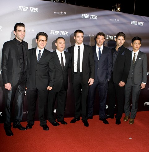 Photos of the cast are attached – Eric Bana with his wife, Chris Pine, and Zachary Quinto along with JJ Abrams. The Star Trek media tour is making its way around the world and the film will do battle against Wolverine which opens a week earlier. Trekkies vs Mutants. Who wins?