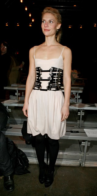 Fashion Week – she made it to one of the shows. Is her Karma Face receding? Has the Goddess forgiven the homewreckage? Or is that a lifetime thing – the modern version of the scarlett letter branded all over her face? I can’t decide – from certain angles there’s a lot of suffering going on. And then there’s the closeup. The closeup offers hope. The closeup conjures Angela Chase – a generation’s worth of worship destroyed by one Billy Crudup. But now that she’s rid the sleeze, is Claire Danes forgivable? Can we love Claire again? You tell me. Source