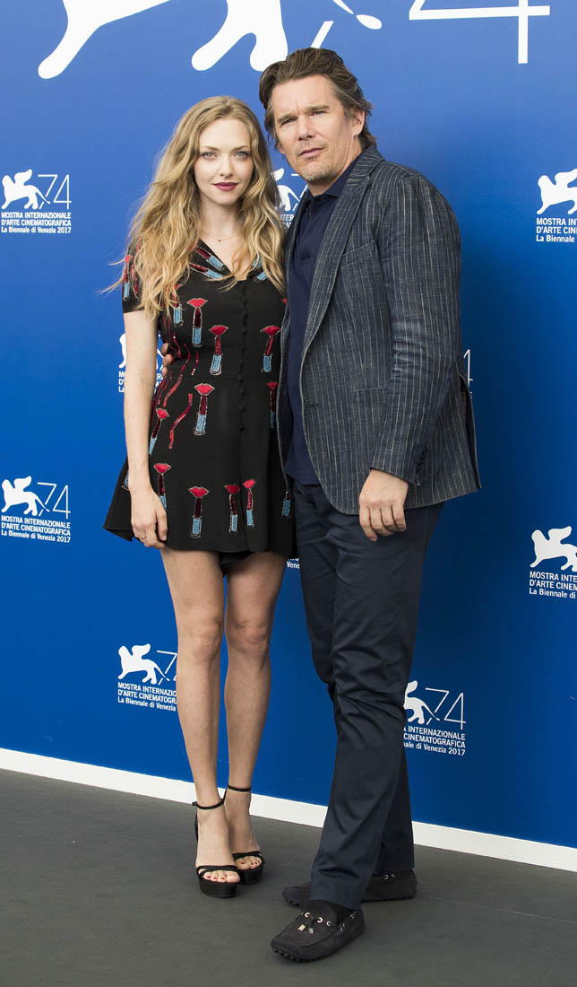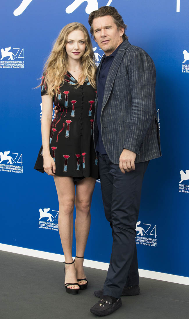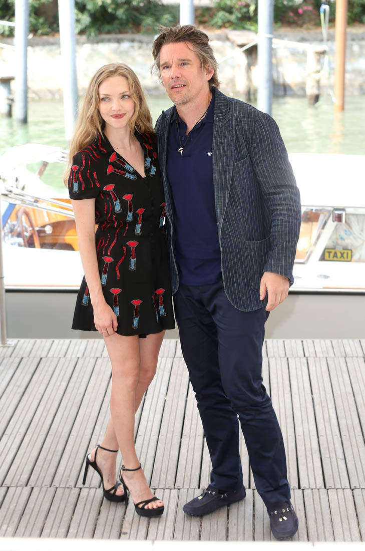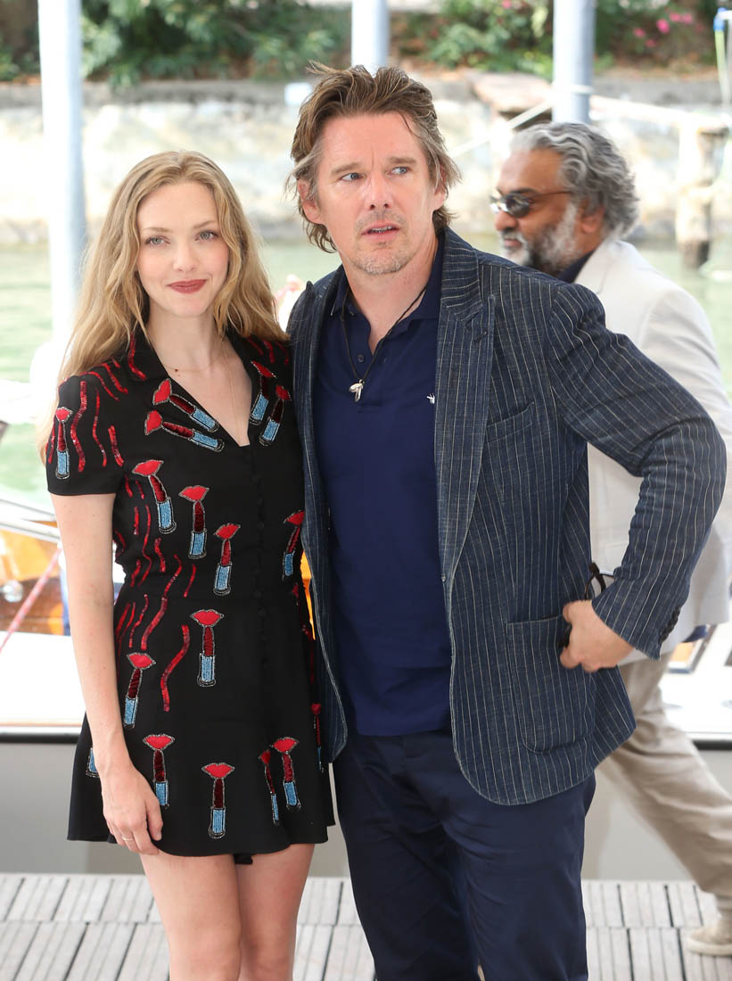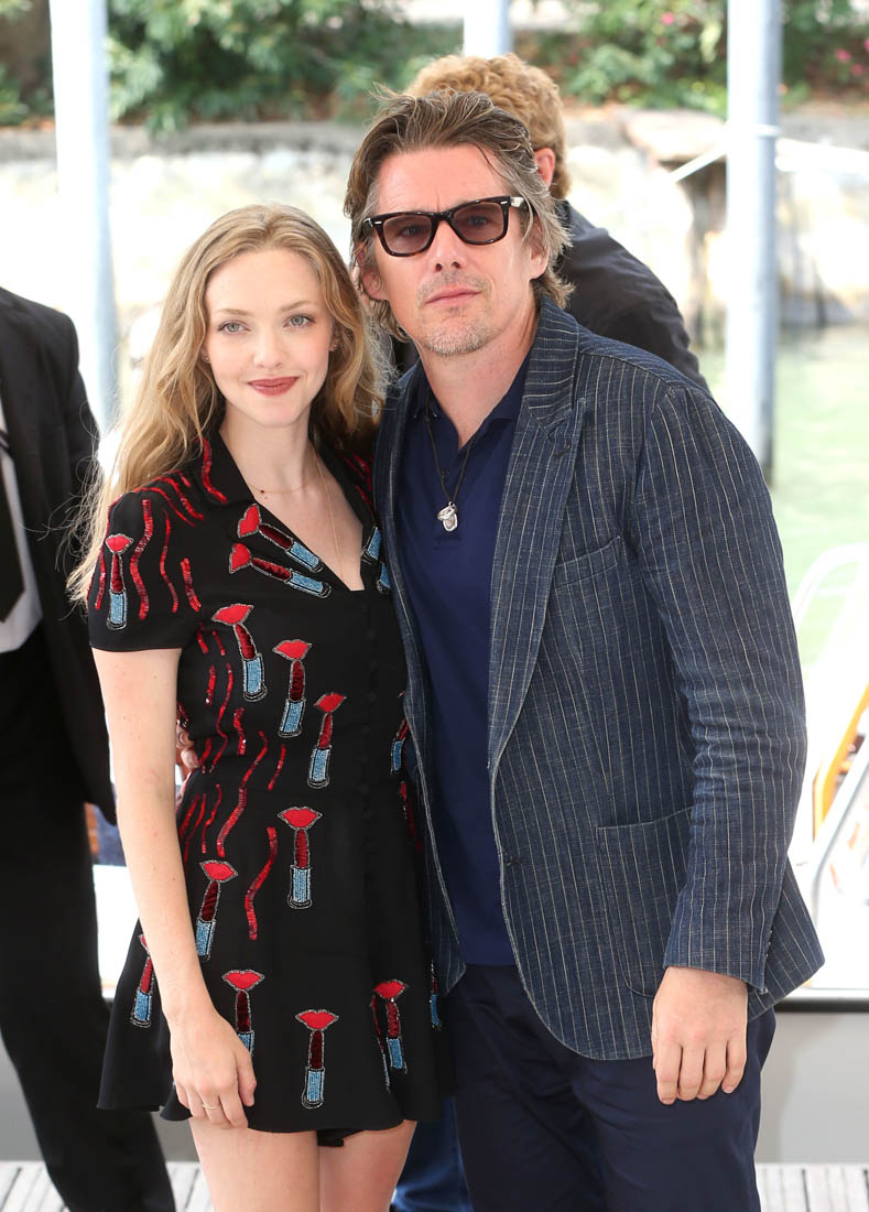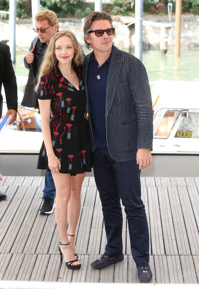 Ethan Hawke and Amanda Seyfried are at the Venice Film Festival supporting Paul Schrader’s First Reformed. The film will also be coming to Toronto for TIFF next week. First Reformed is about a priest, a “whisky priest” played by Ethan, tormented by past mistakes and struggling with his faith. Reviews so far have been solid, if not outstanding, with critics praising Ethan’s performance. Variety called him a “supple” actor, and it’s a good word, considering Ethan’s career both as an actor and as a celebrity.