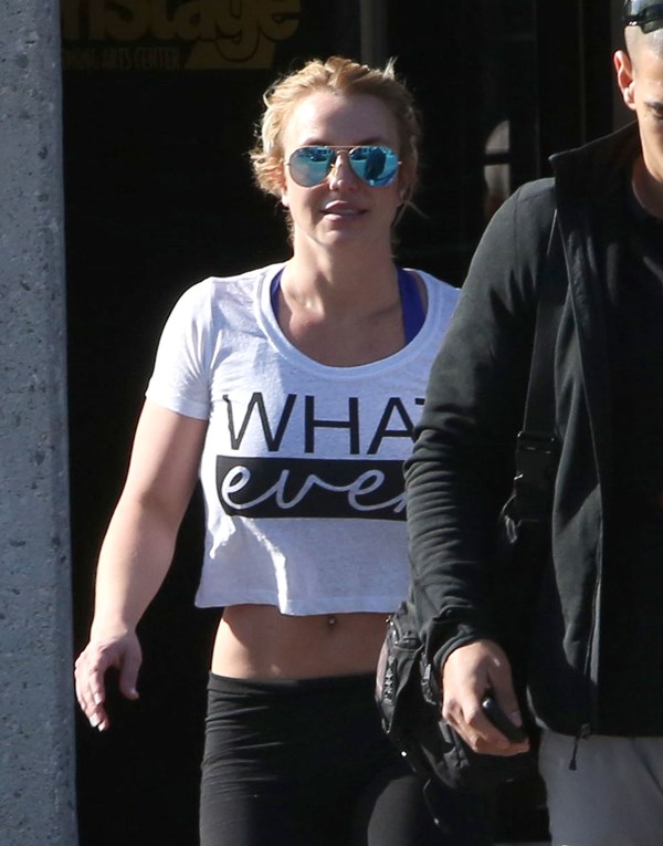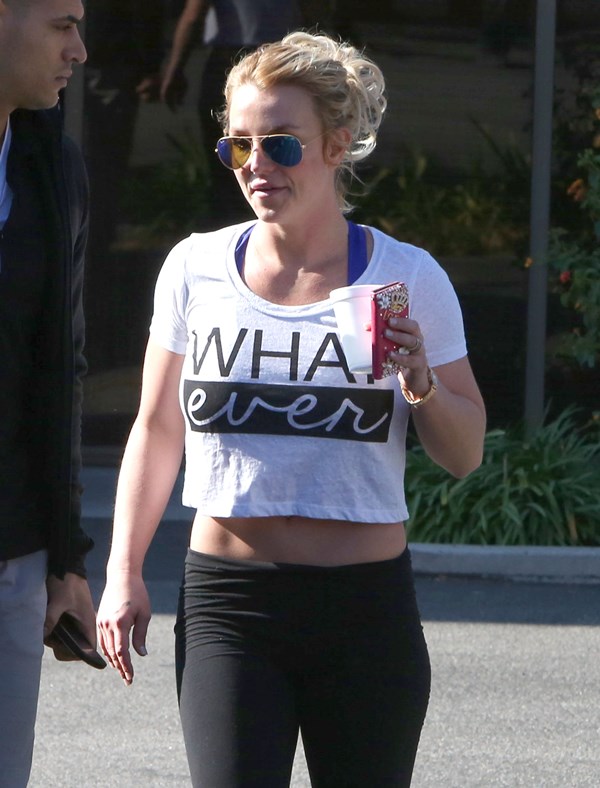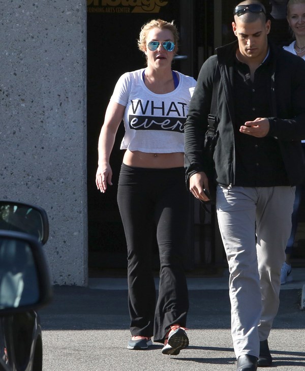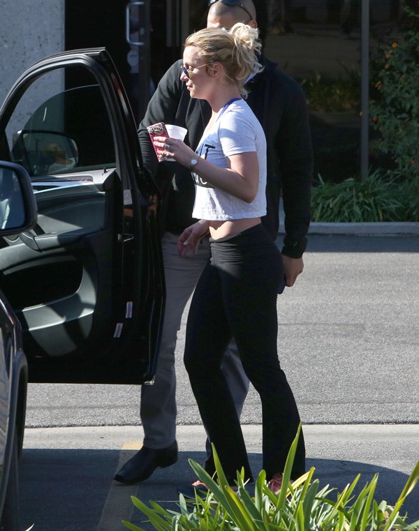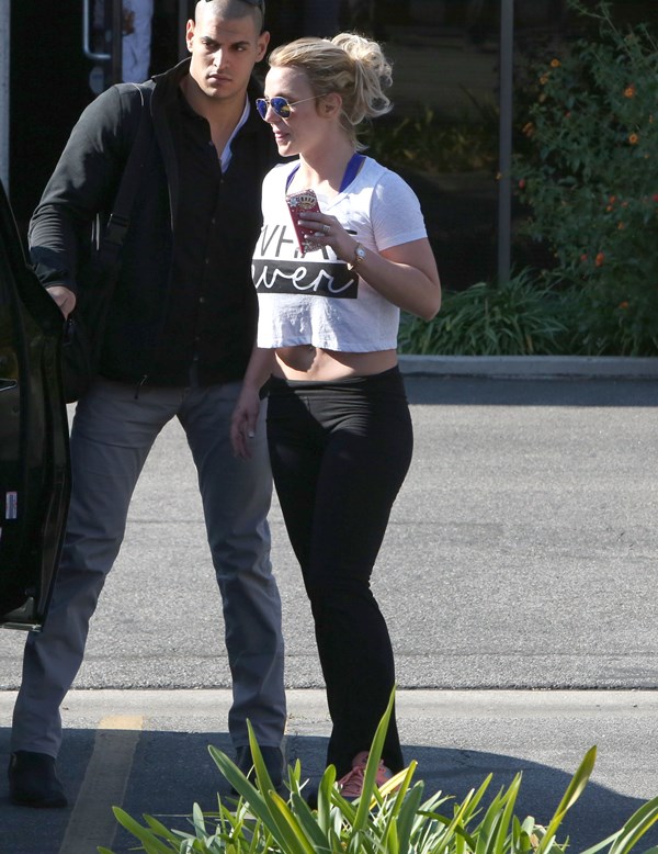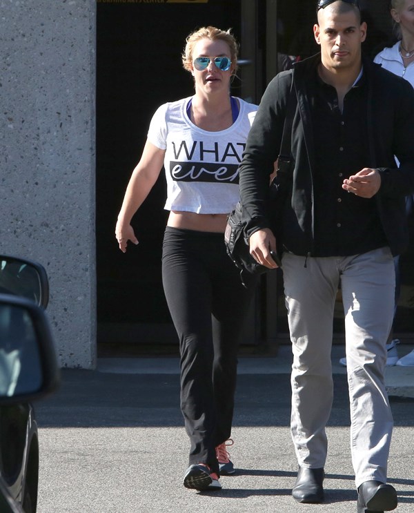 Next, it’s Britney leaving the gym with a bodyguard I’m surprised she’s not dating. A happy Britney is a fit Britney. A happy Britney is a Britney who has a boyfriend. And she does. Now everyone keeps looking at her ring finger, wondering if Charlie Ebersol is next. Of course she would. And of Team Spears would heavily monitor that.