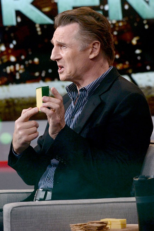 Finally, Liam Neeson promoting Taken 3. HOW MANY TAKENS CAN THERE BE?