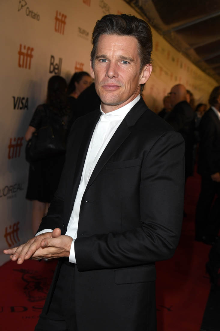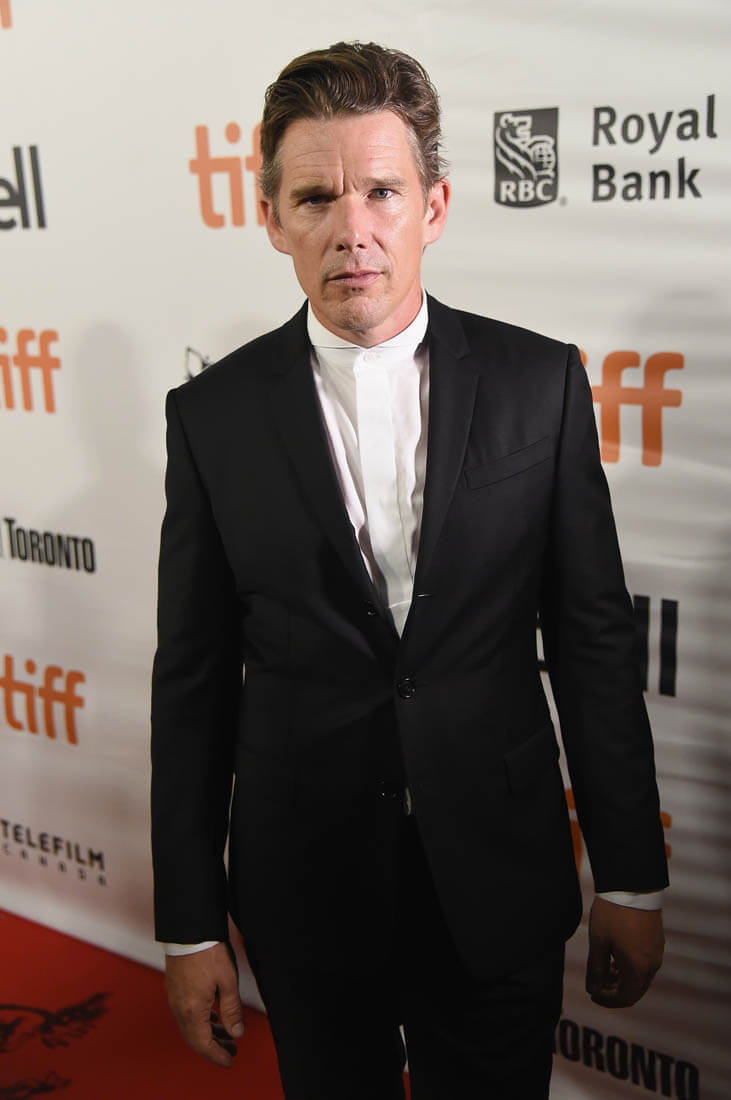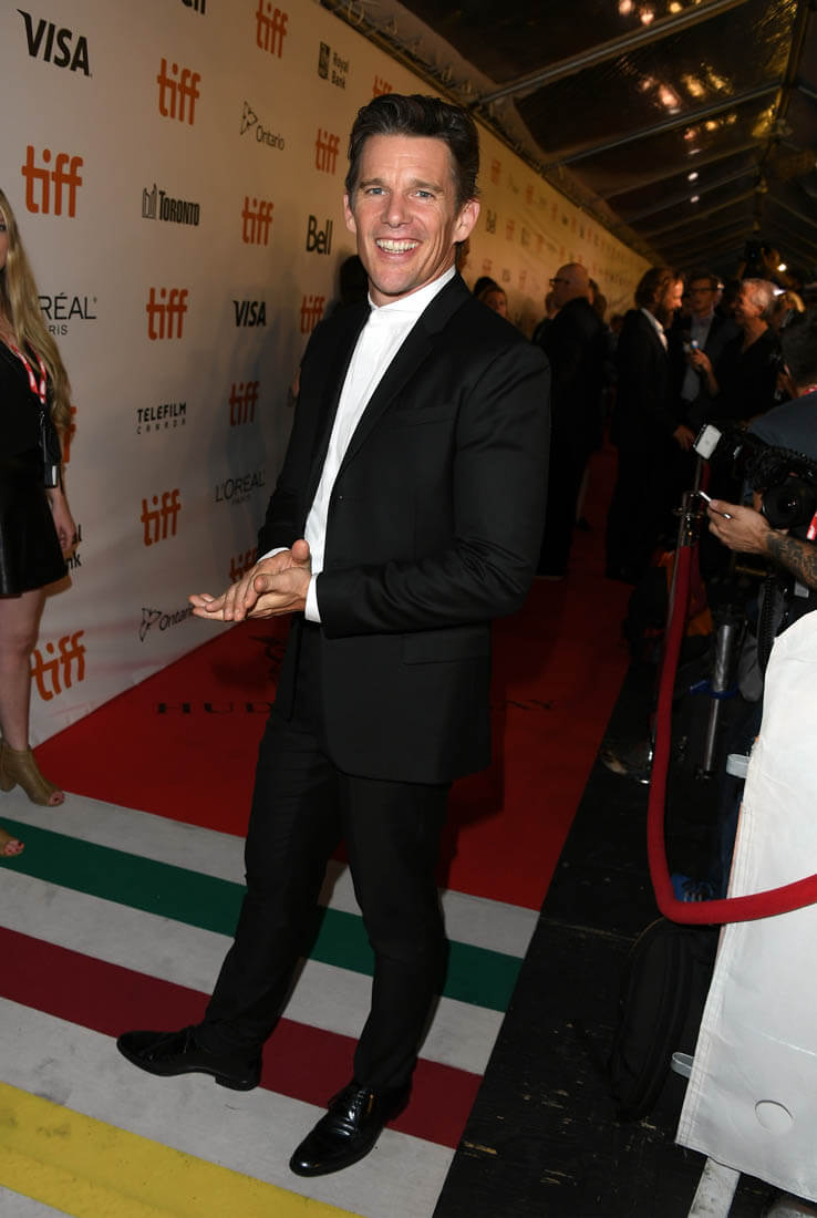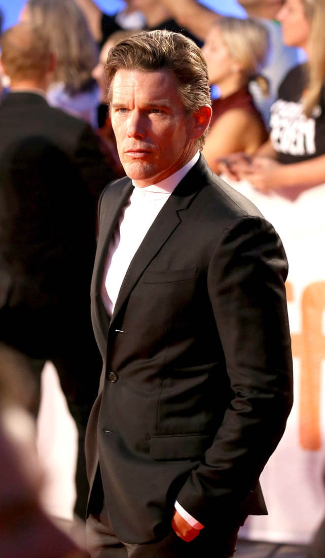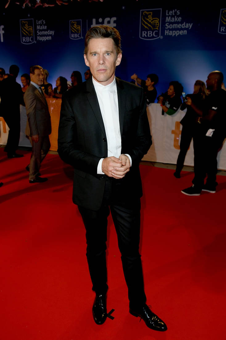 Ethan was in Toronto last night for the opening gala premiere of The Magnificent Seven (Sarah will have the review on Monday). During the carpet, I got a text from my executive producer of etalk about it. “Ethan is hot – Gattaca hot”. Do you remember how hot he was in Gattaca? I don’t know if that’s hyperbole, to say that he’s as hot now (again?) as he was in Gattaca. But he does look great. Really, really great.
