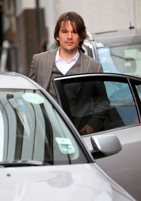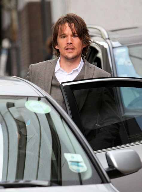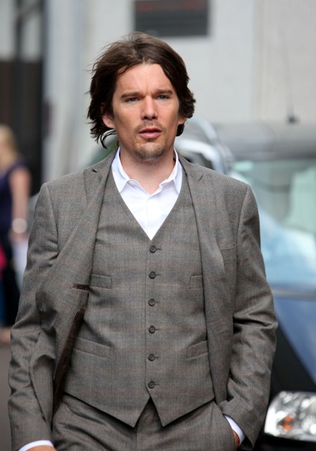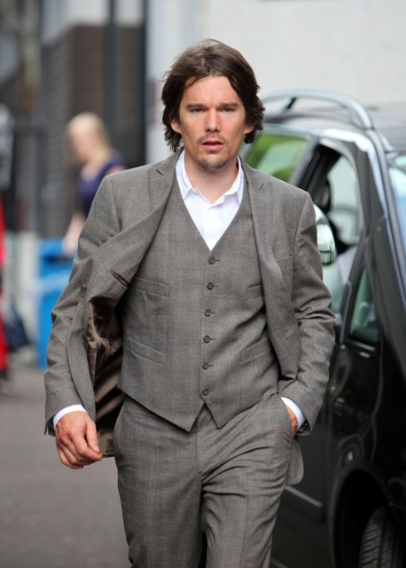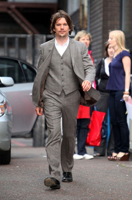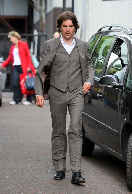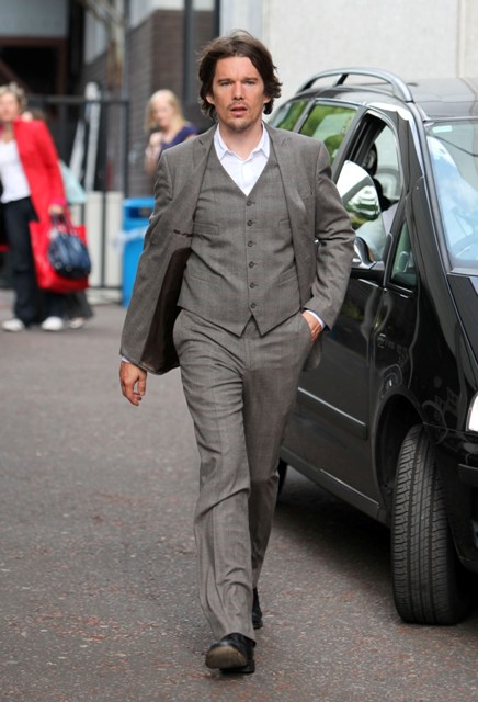 A quick photo post – Ethan Hawke in London today for an appearance on GMTV in a very well tailored suit, not something Troy Dyer would wear at all, hell no, but it brings back Troy memories anyway because, like many of you, and my friend Michelle, that was how I like him best.