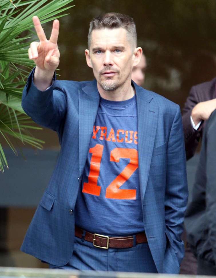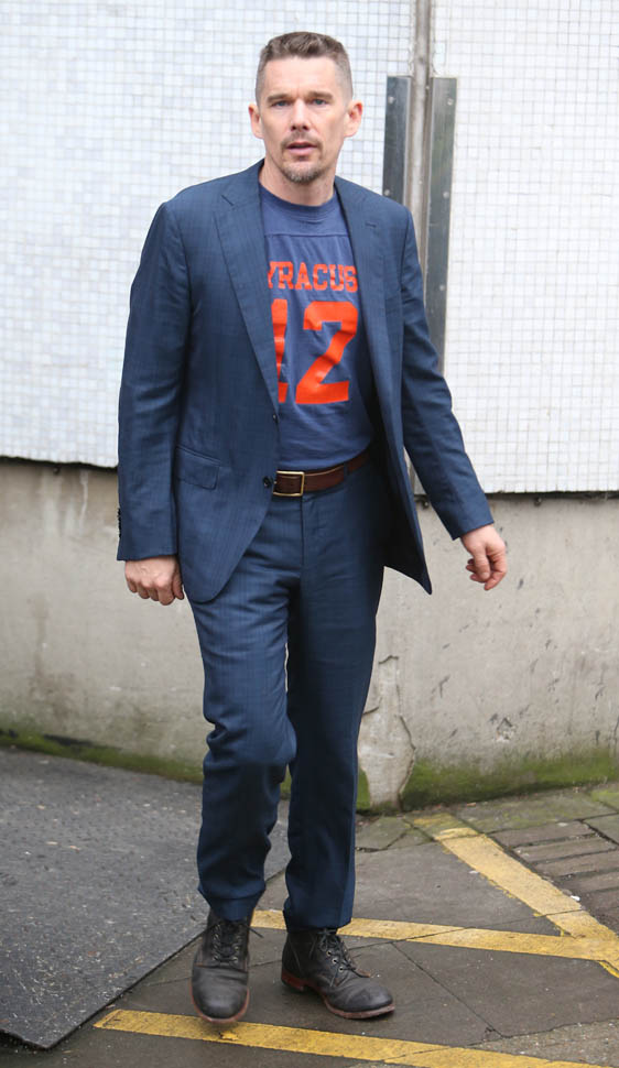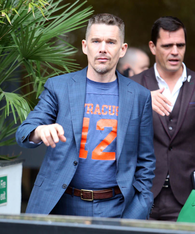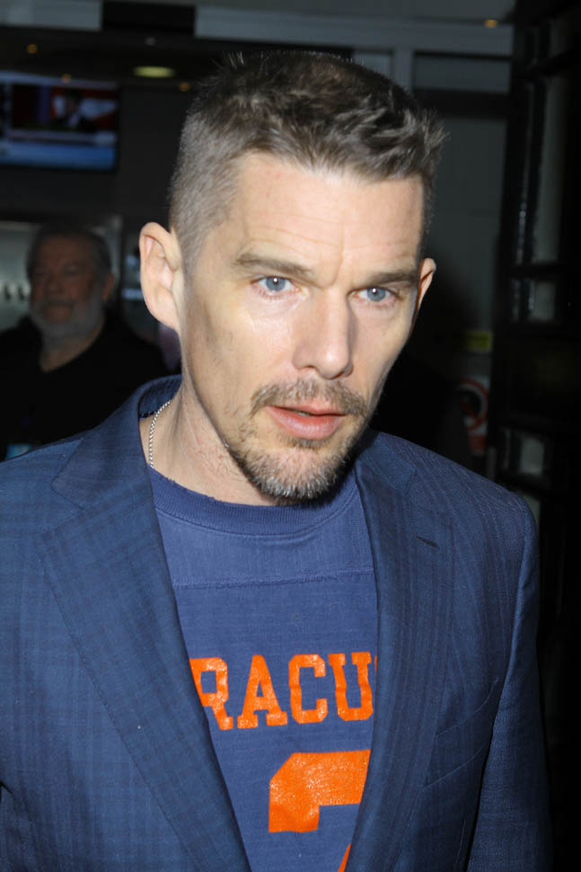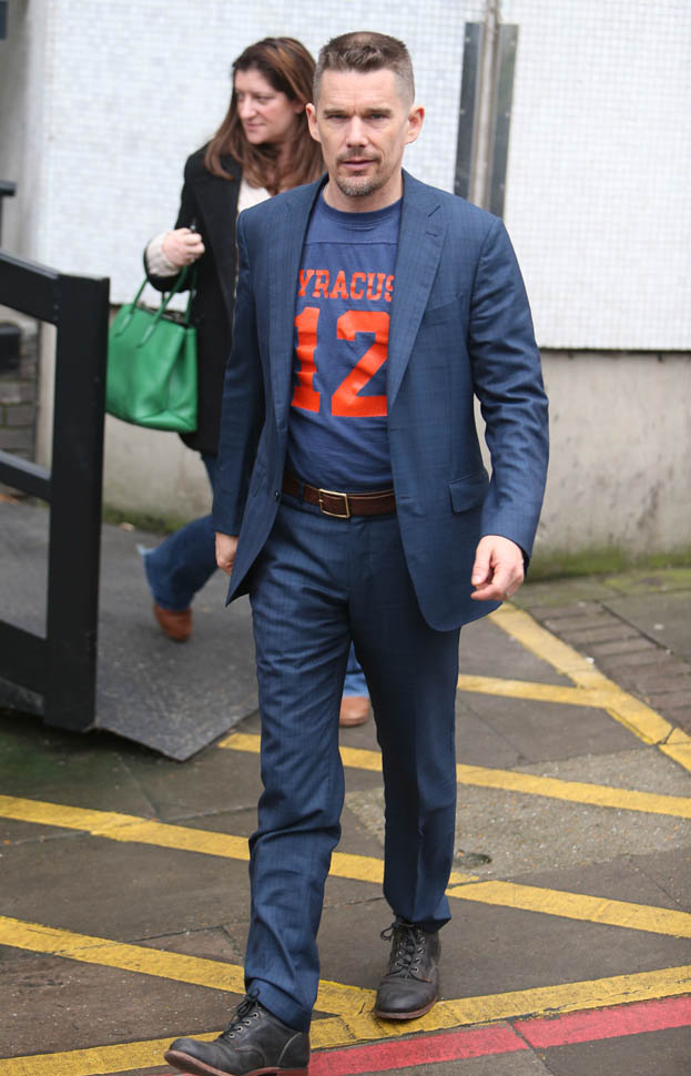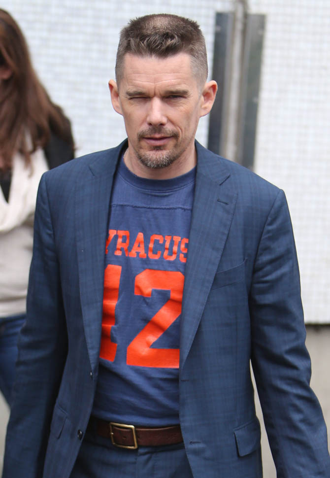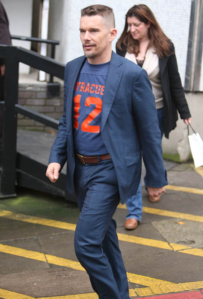 Ethan Hawke is in London. Here he is at ITV studios earlier and then tonight he was featured at BAFTA A Life In Pictures: Ethan Hawke. This is new hair. Two weeks ago it was longer. So will this be his award season hair?