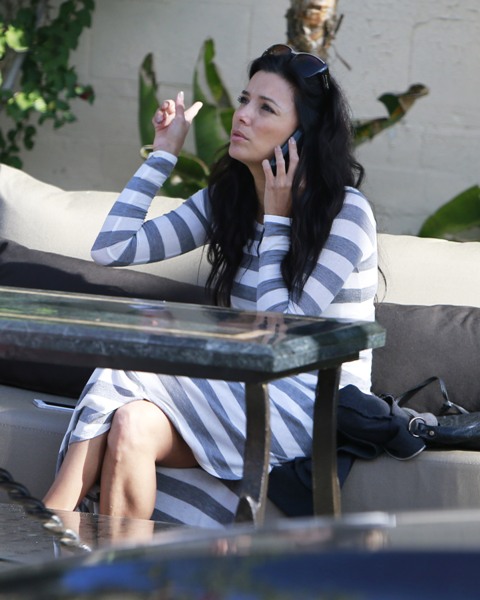 Look so comfortable. The material seems super soft, and I like how it’s cut high on one side, even though it’s not really all that warm here in LA. I would have been freezing in this with wet hair and no socks.