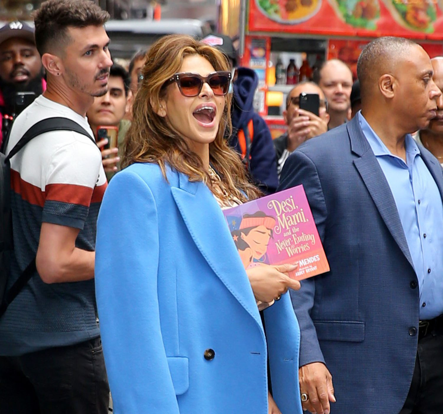 But Eva is out front right now, back on promotion for the first time in a long time, in New York on a press tour for her new book, Desi, Mami, and the Never-Ending Worries, a picture book inspired by Eva’s own childhood and her children about anxiety in kids and how to talk about it.