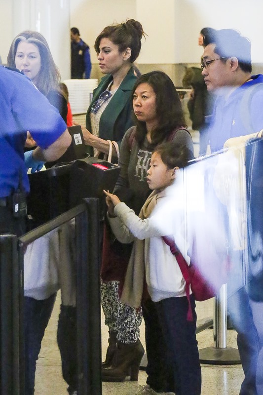 Eva Mendes was photographed at LAX this weekend. She doesn’t look any different to me. But according to the Daily Mail she told TSA officials that she didn’t want to go to through the body scan at security because she’s pregnant. I don’t know where the Mail is getting this. They don’t cite a source and they only refer to the story as a “reportedly” without telling us the origin of the “reportedly”.
