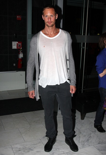 Evan Rachel Wood and Alexander Skarsgard both turned up in New York last night but at different events. Evan was at Cipriani for Fashion Group International’s Night of Stars. Alex was much more casually dressed with a hole in his shirt at Sienna Miller’s After Miss Julie opening.