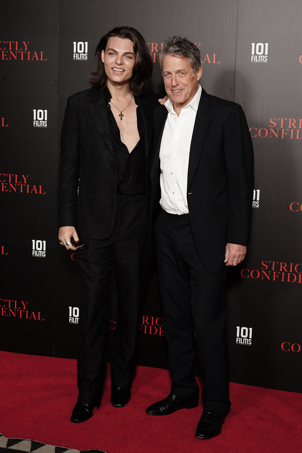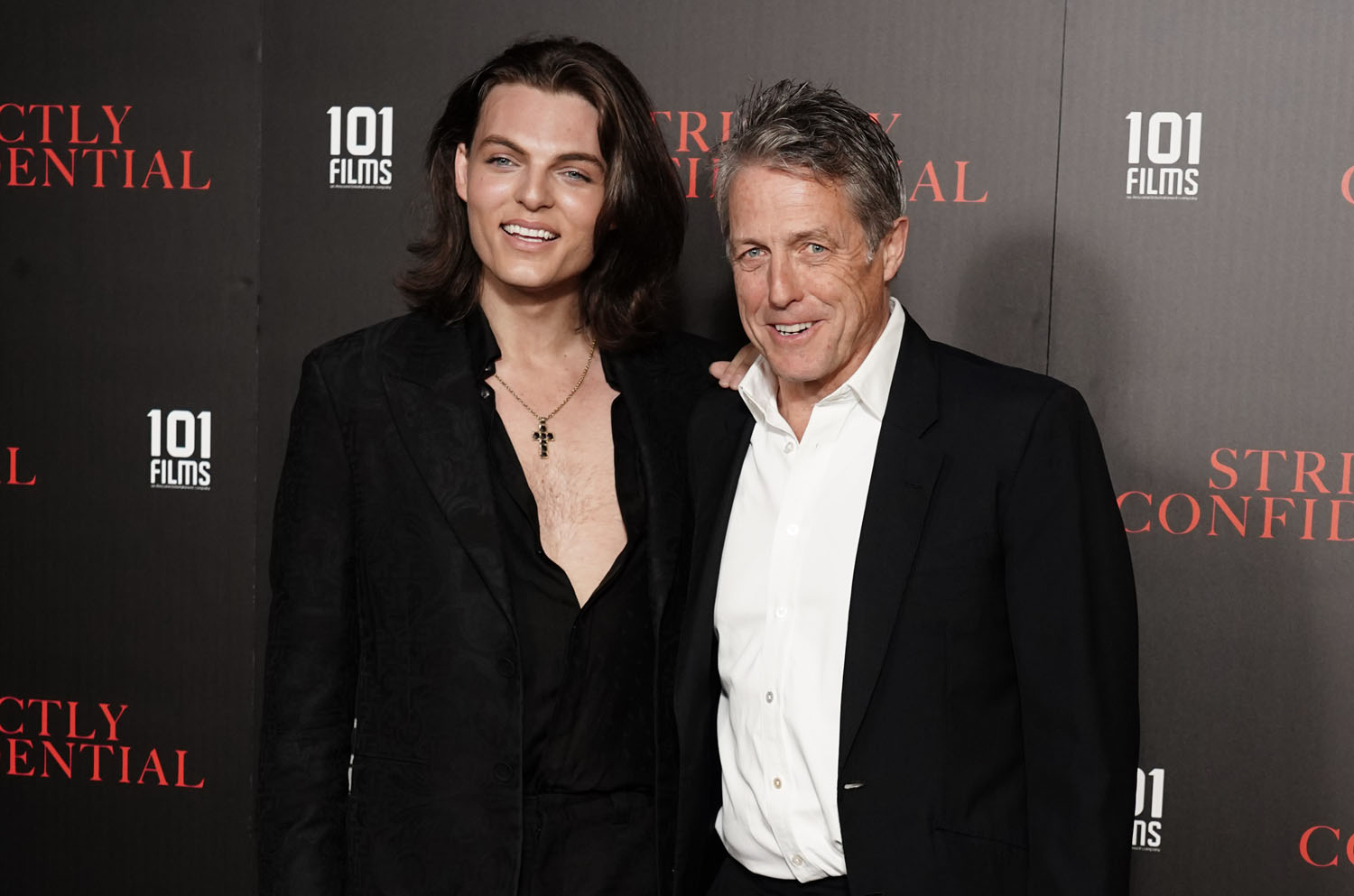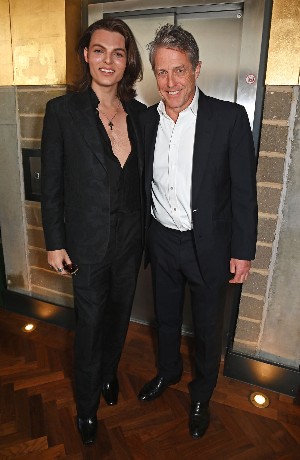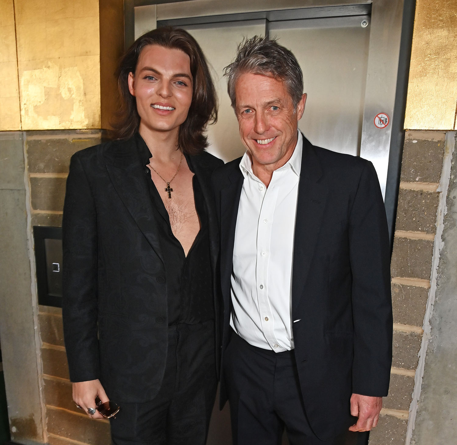 Here is Hugh Grant with his godson, Damian Hurley. It is freaky how much Damian looks like his mother, Liz.