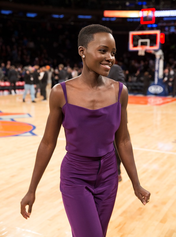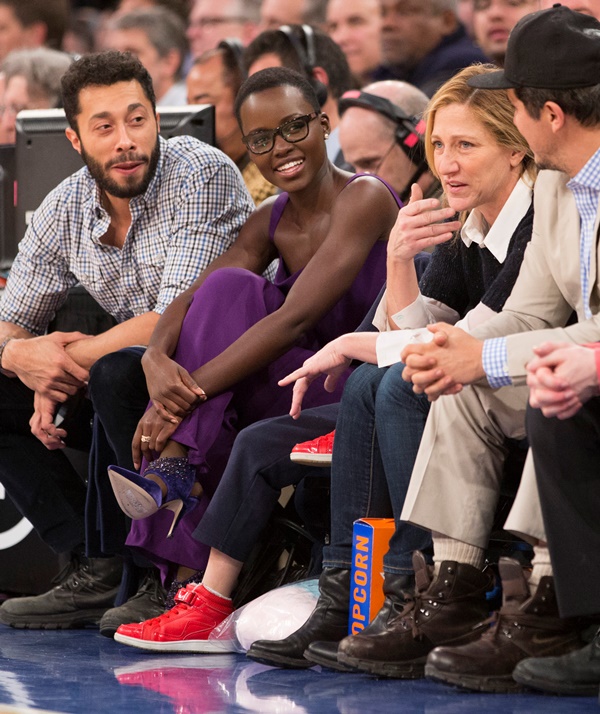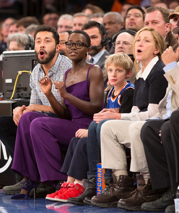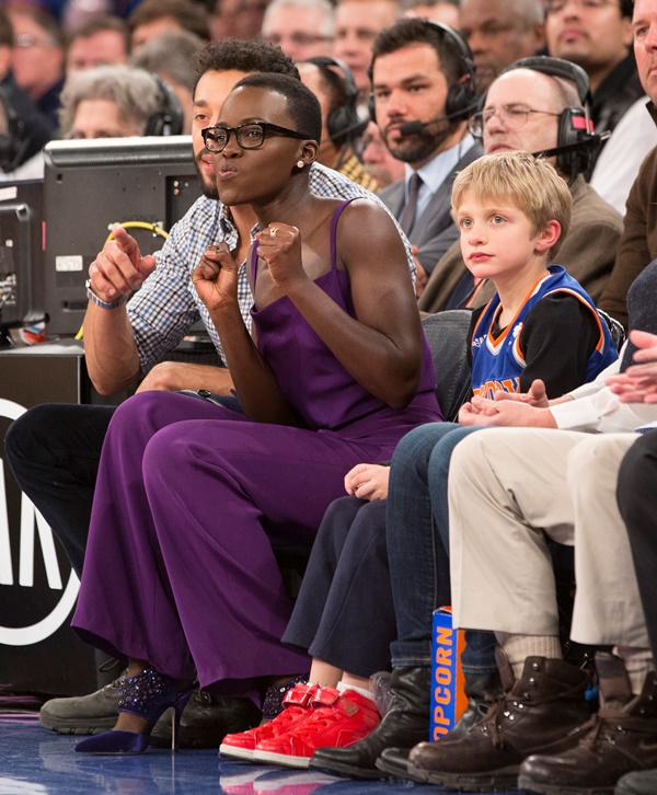 Lupita Nyong'o sat courtside at the Knicks game yesterday and everyone wanted a piece of her. Look. She's the most popular girl at MSG. She's the most popular girl on the award circuit. Even more popular than Jennifer Lawrence since people (unfairly, arguably) seem to be tired of the Jennifer Lawrence. Lupita is the Lawrence of 2014 and Lawrence is the Hathaway of 2014? Discuss.