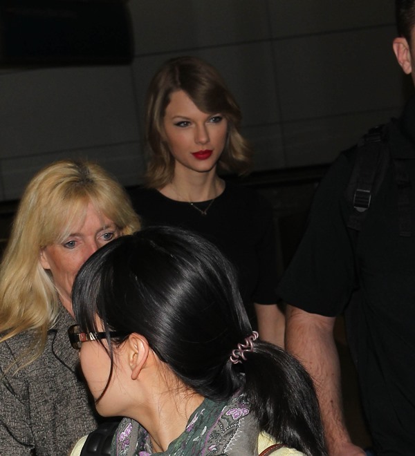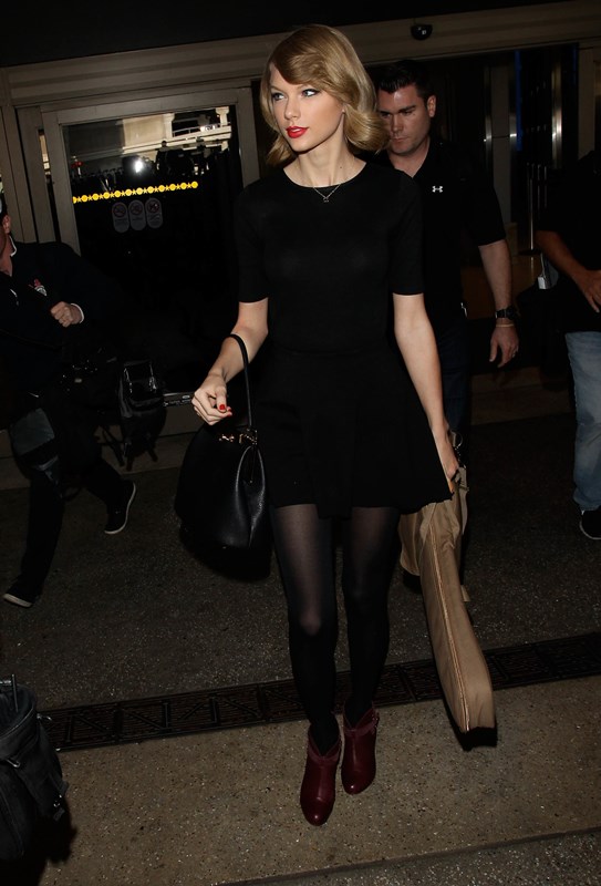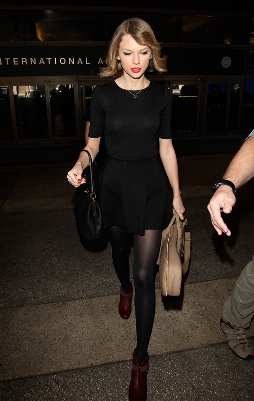 Attached – Taylor Swift and her new hair arriving at LAX.