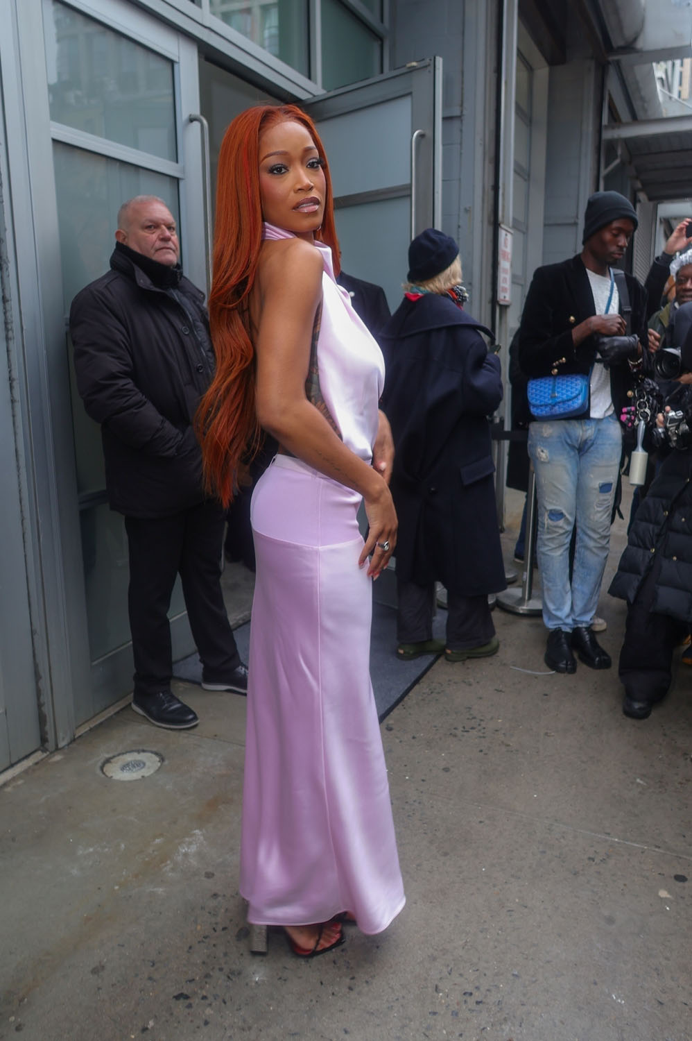 Keke Palmer is in New York today. She showed up to Brandon Maxwell’s fashion show in lilac and also lit up the Empire State Building wearing the sh-t out of a red dress, WOW.