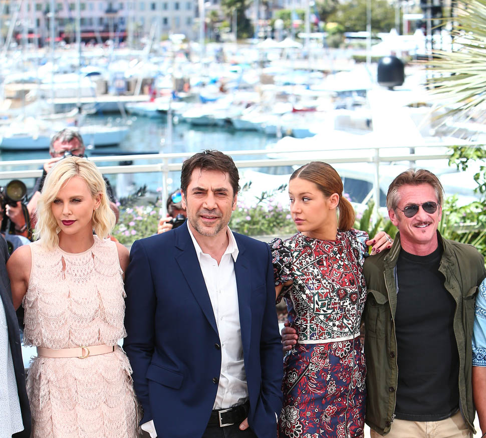 Today at the photo call for The Last Face, directed by Sean, in Cannes. Exactly a year ago in Cannes, this is what Charlize and Sean looked like: