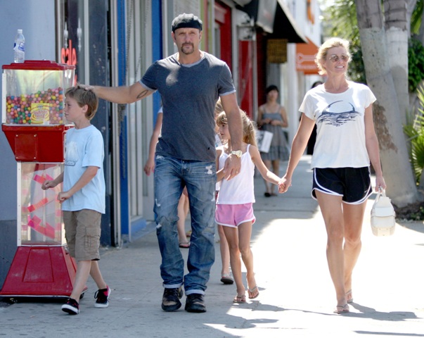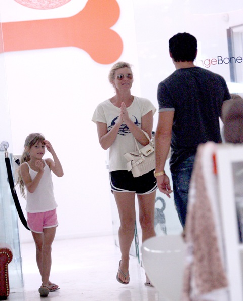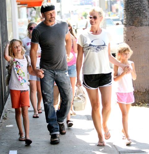 A rare candid sighting of Tim McGraw and Faith Hill with their kids in LA shopping yesterday looking at puppies at a pet store.
