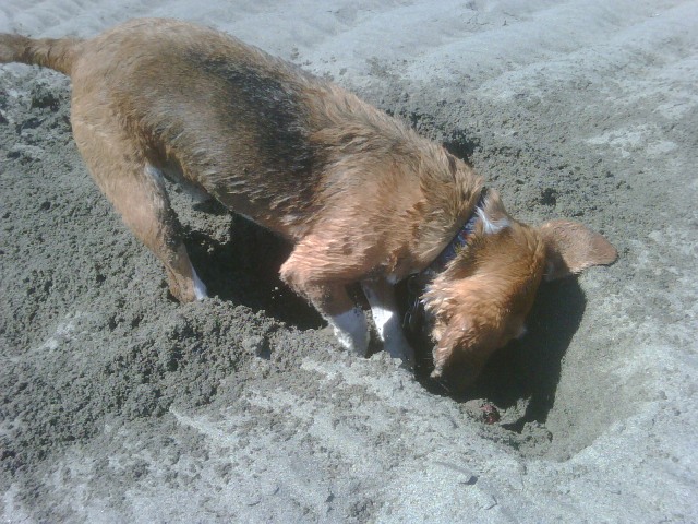 Marcus went to the beach yesterday and was digging obsessively. I received this photo at 6pm. Miss them.