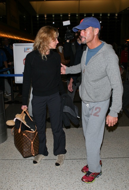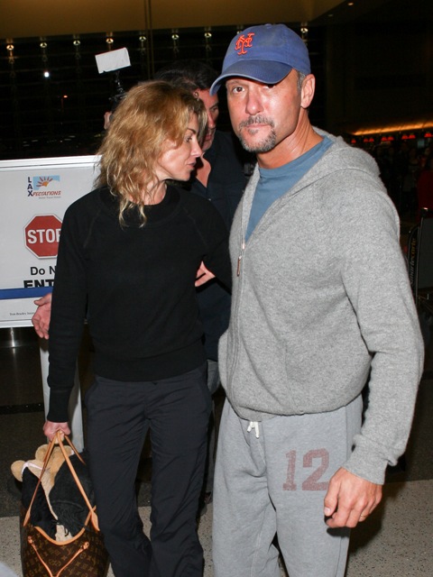The reason I’m posting these photos is because a. have I mentioned I am obsessed with celebrity travel habits? and b. I’m so down with Faith Hill not wearing any makeup*. Here she is, with Tim McGraw and their daughters, at LAX heading for Sydney. It’s a long flight. They are dressed and ready for it. Because...