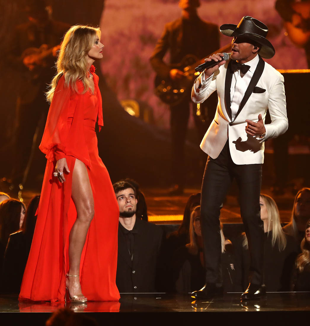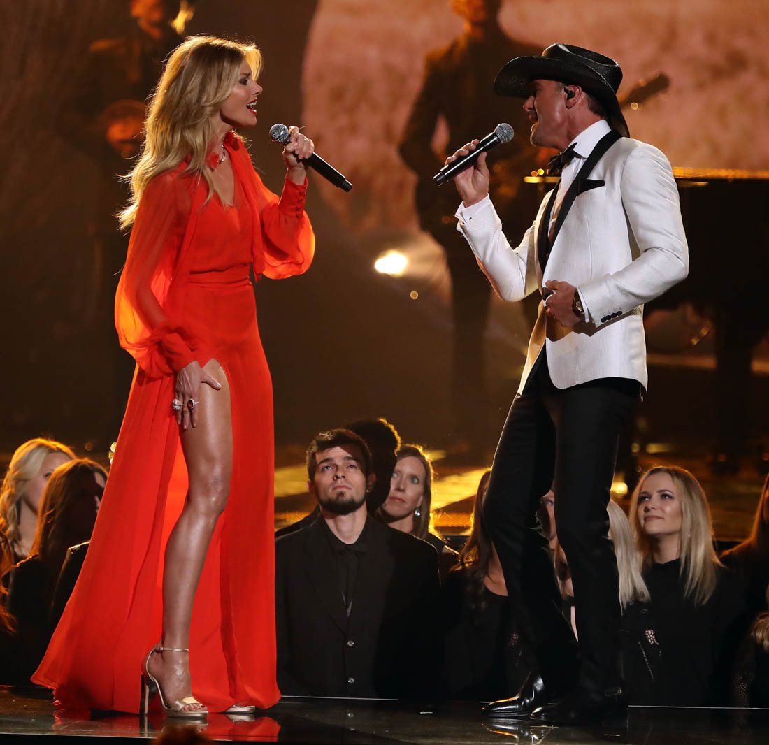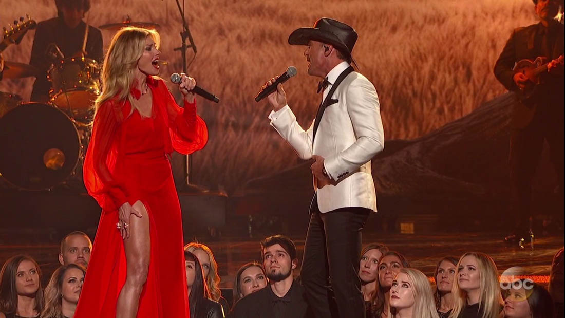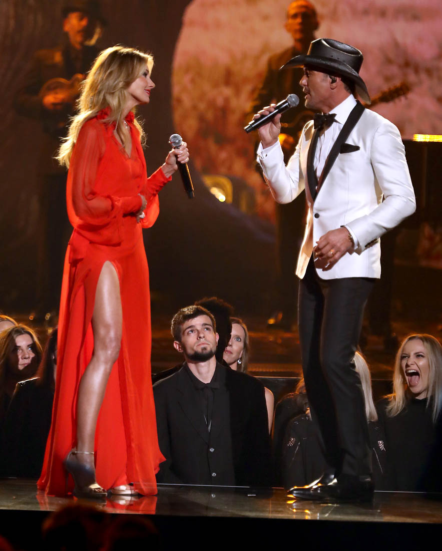 During the performance, Faith changed into a red dress with an exposed thigh. And it’s a testament to the pervasiveness of Angelina Jolie’s Oscar leg moment that even Jacek, who doesn’t exactly have the best gossip memory, pointed it out immediately. “Look, Faith Hill is pulling a Jolie”. It was a proud moment.