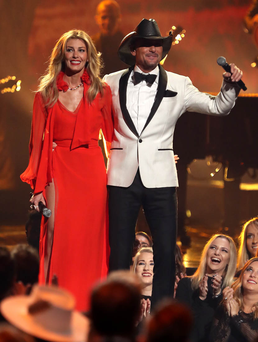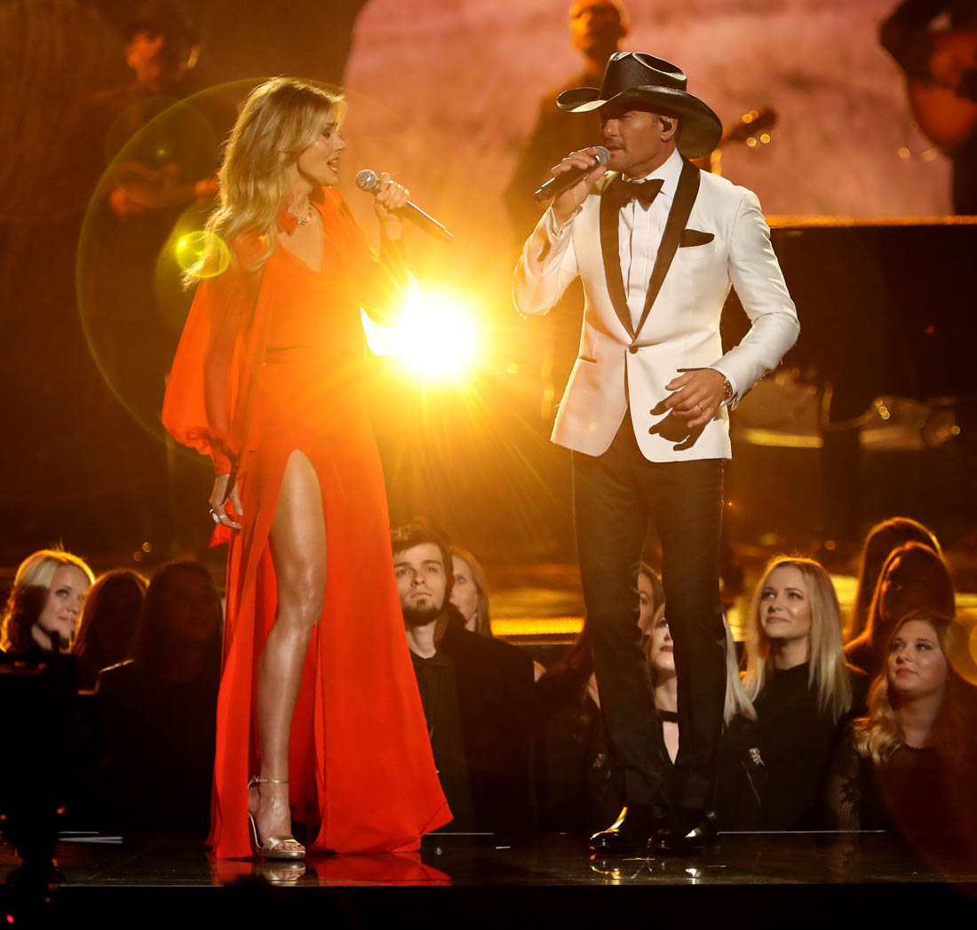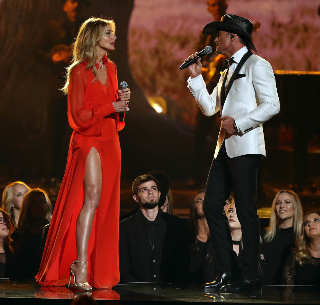 During the performance, Faith changed into a red dress with an exposed thigh. And it’s a testament to the pervasiveness of Angelina Jolie’s Oscar leg moment that even Jacek, who doesn’t exactly have the best gossip memory, pointed it out immediately. “Look, Faith Hill is pulling a Jolie”. It was a proud moment.