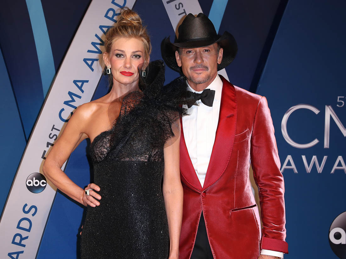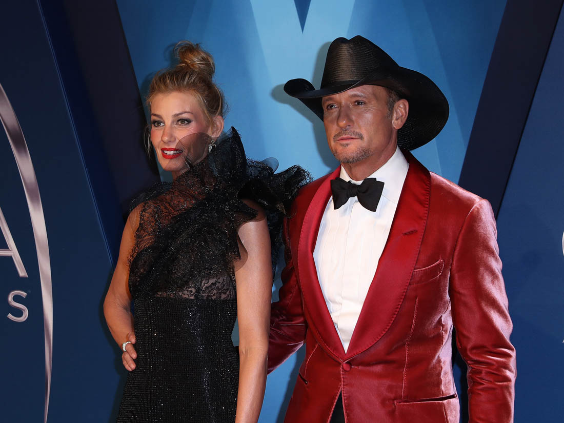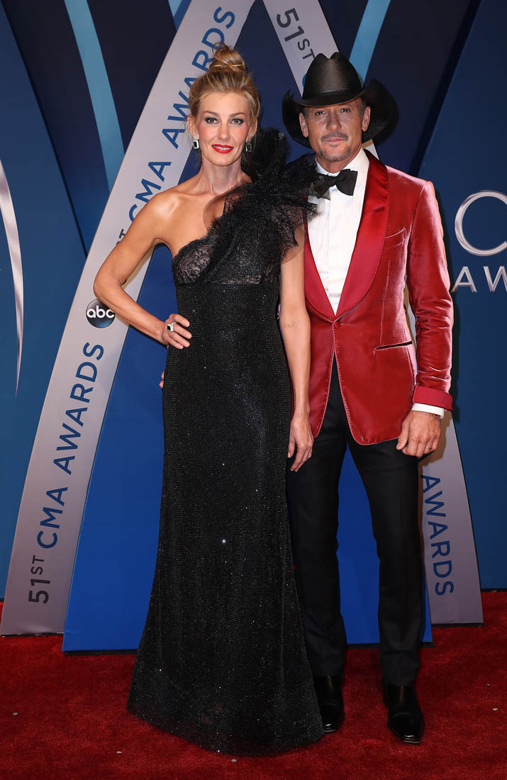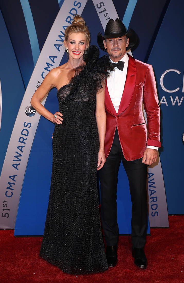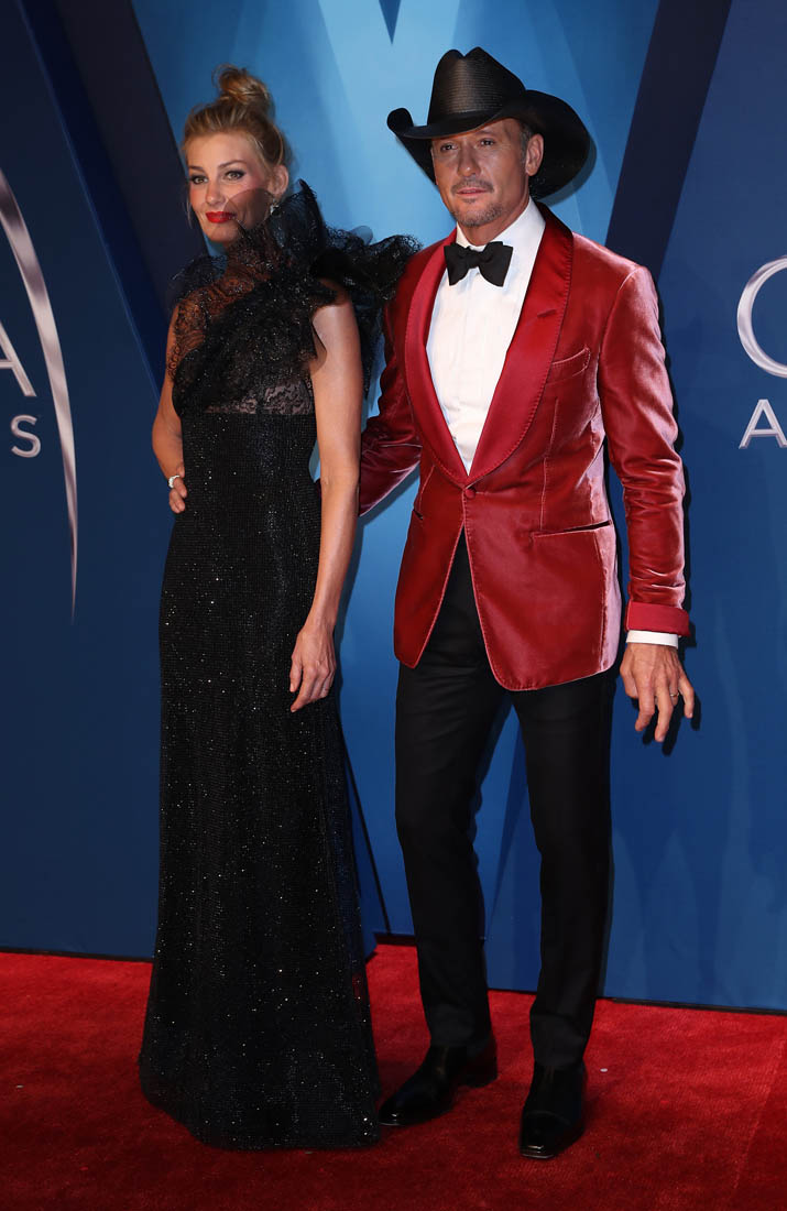 Faith Hill wore a black one-shoulder Armani gown on the red carpet at the CMAs last night. Don’t care for it. And not because of all that gathering creeping up her neck on one side. But because of that black sparkle material. It’s so specifically of an era, only without a modern update. Which, I think, has been Mr Armani’s problem.