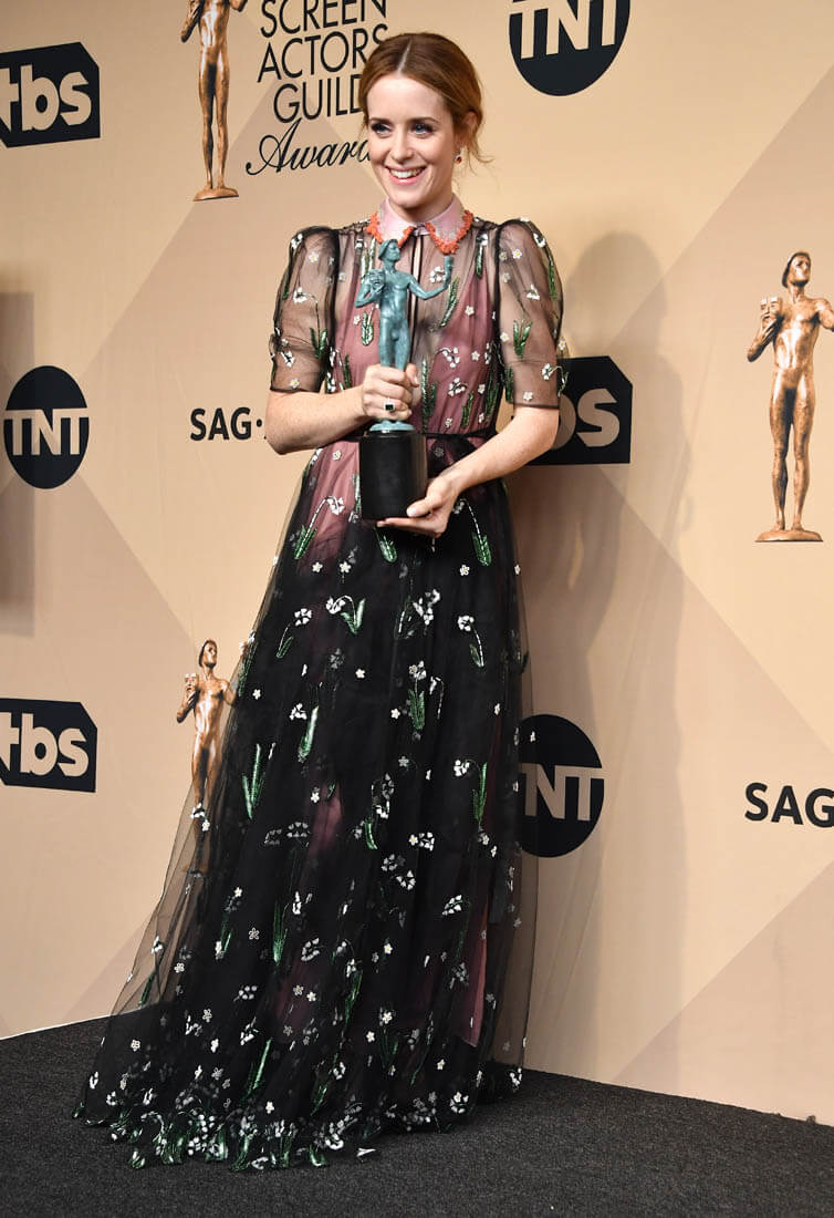 I did not think Claire Foy was going to win, and I told Lainey as much. Yes, yes, people love The Crown, and obviously John Lithgow because that …shoulder-hump prosthetic is amazing as it is, but I didn’t think that the mousy Queen Elizabeth, who has been wide-eyed but, you know, not so much a firecracker (I’m only halfway done the series don’t yell at me) was going to inspire the love of voters in the Screen Actors Guild—though it was kind of an odd category, including Millie Bobby Brown, Thandie Newton, Robin Wright, and She Of All The Expressions Winona Ryder. But Lainey maintained that SAG voters like British stuff, and cited the eternal love—even last night! – for Downton Abbey.