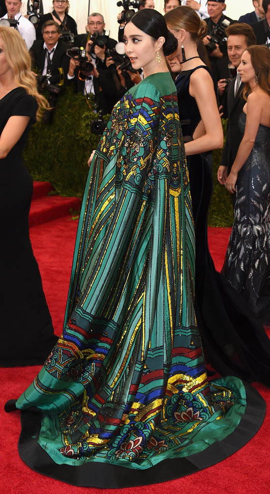 Kate Hudson’s gold dress was worn like a dishrag. And then there’s a gold dress the way Fan Bingbing wears a gold dress. By covering it with a cape. I wish I could show you more photos of her but photographers at these events tend to ignore international stars.