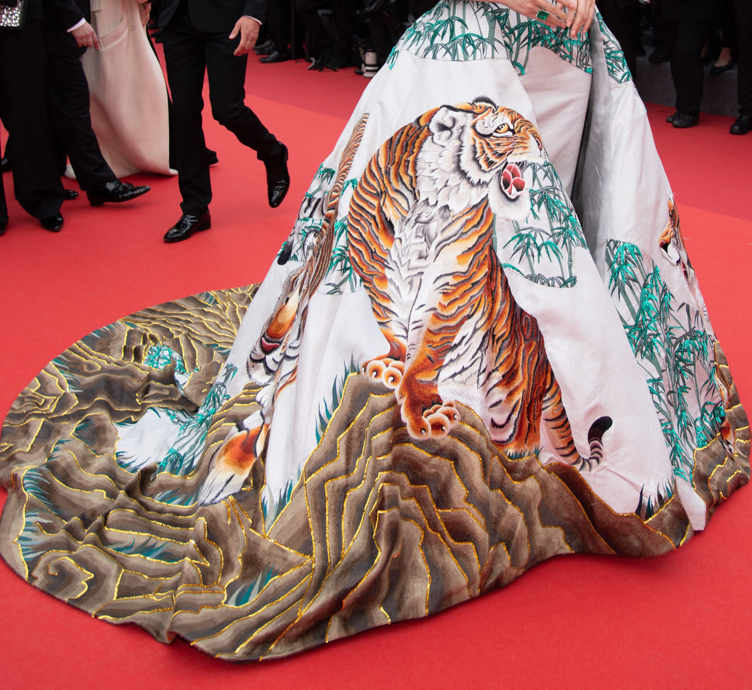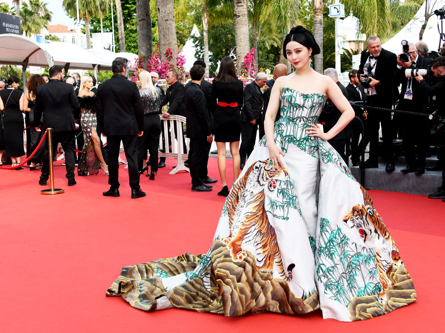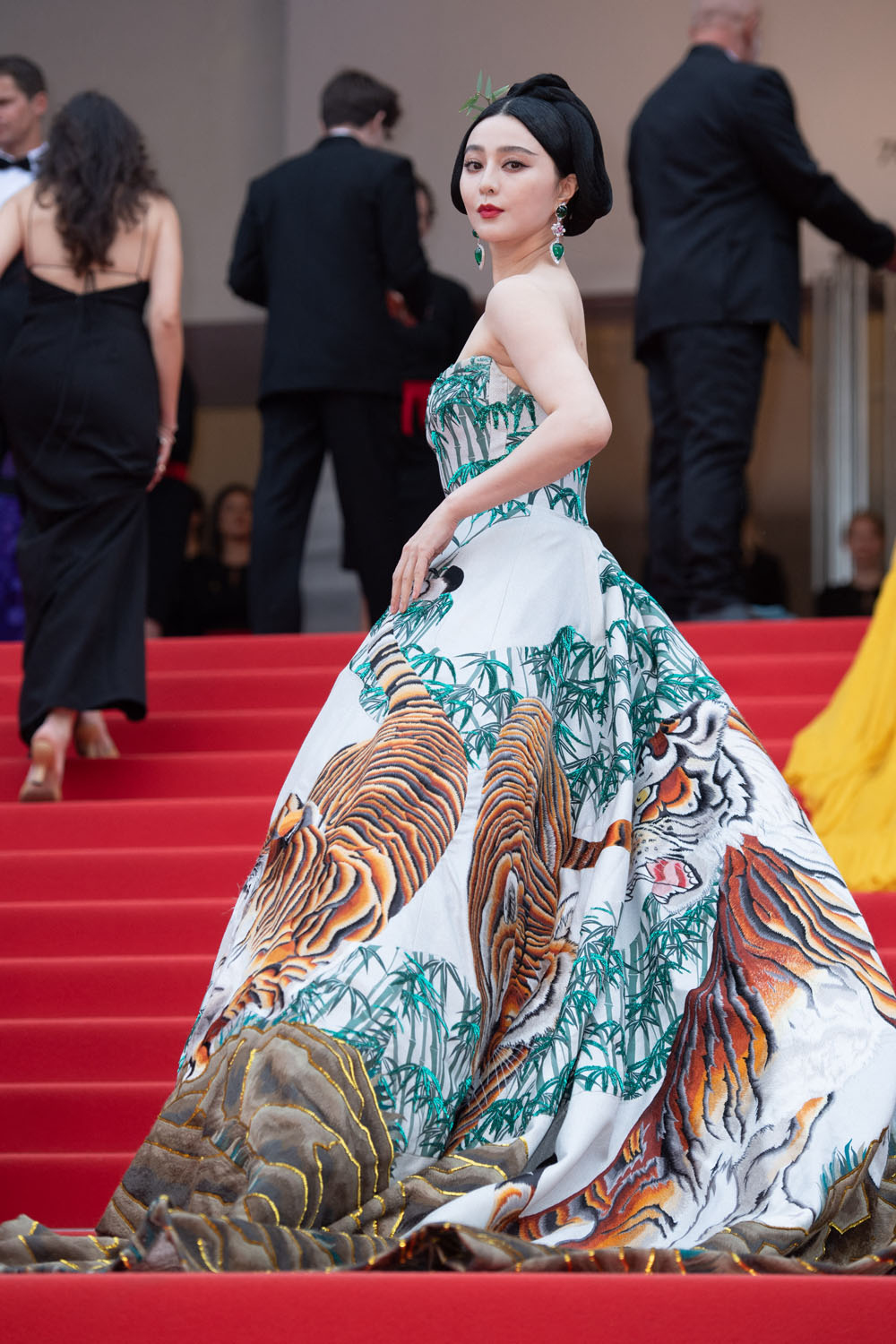 Remember when Fan Bingbing showed up and slayed on the Oscars red carpet? She’s a big occasion dresser and she’s come through again in Cannes with a high drama look featuring a giant flower all over her body. But that was for the party. See the attached photos for what she wore on the carpet – a traditional Chinese hairstyle to go with her giant tiger dress. This is why she’s a Cannes regular, or at least she was before she got disappeared…so it’s great to see her back! (Go Fug Yourself)