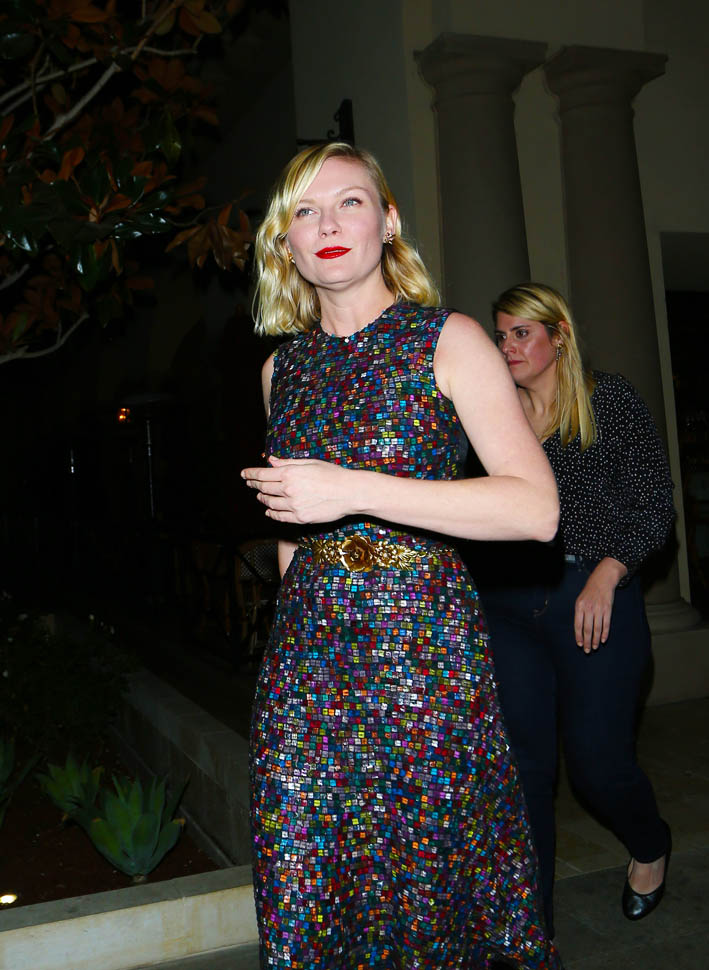 Attached - Kirsten Dunst leaving Bouchon Restaurant in Beverly Hills last week.
