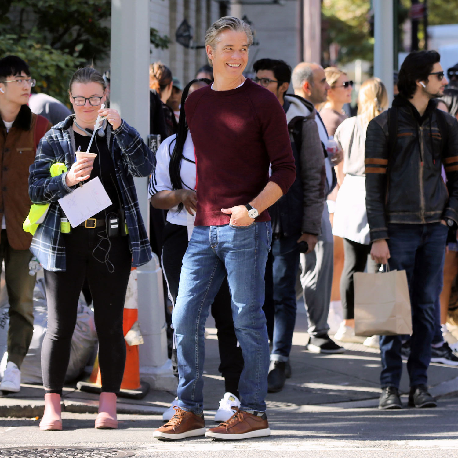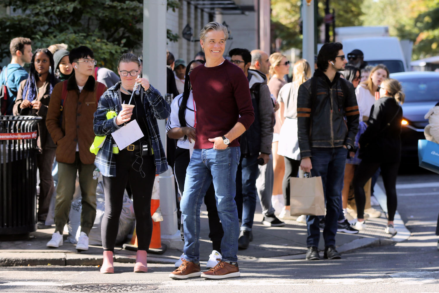 It’s been just over a month since we last saw Timothy Olyphant. Two sightings in less than two months! Olyphantians, we are FEASTING! This is Olyphant on the set of Full Circle in New York City. It’s a miniseries from Steven Soderbergh and Ed Solomon (one of the writers behind Bill & Ted). It’s about a “botched kidnapping” and how that affects a bunch of people. Kind of sounds like the first season of Perry Mason, but maybe I’m still wary of kidnapping stories since that one let me down. But besides the fact that I will watch almost anything with Timothy Olyphant in it (sorry, Amsterdam), I am always interested in what Steven Soderbergh is doing. He is one of the few American filmmakers who is constantly evolving and experimenting and doing something just for the hell of it.