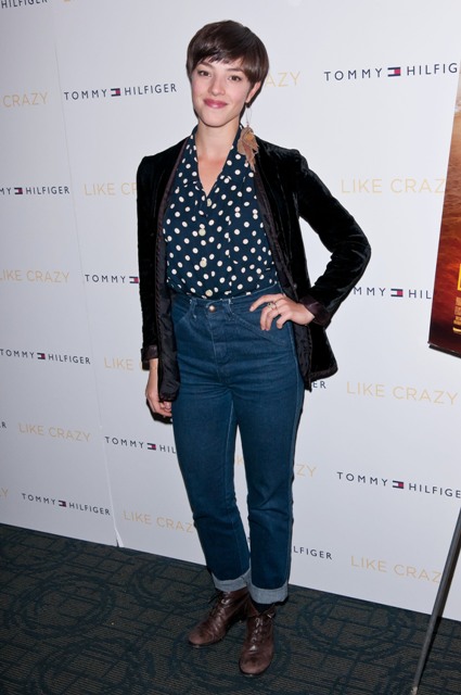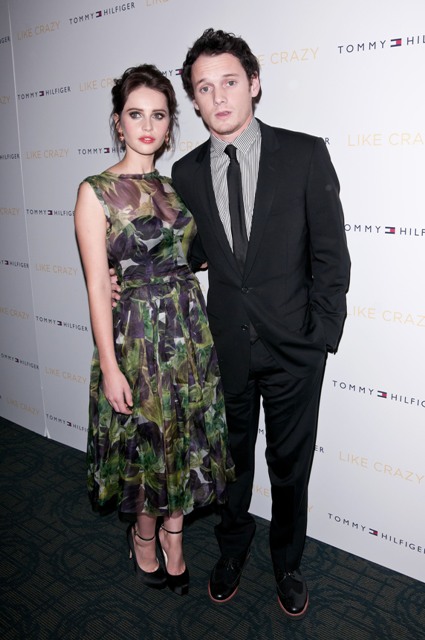 Felicity Jones, Anton Yelchin, and director Drake Doremus were in New York last night for the premiere of Like Crazy. Not sure why Anton looks so stunned in every photo. But Felicity, she has some good red carpet instincts, non?